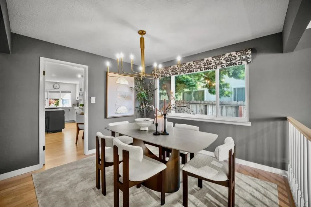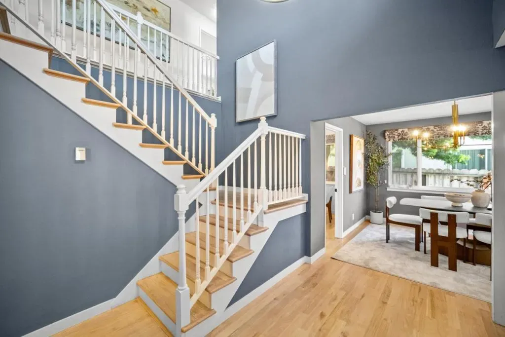 Welcome to 861 Haddock St, a beautifully updated 5-bedroom, 2.5-bath home offering 2,470 sq ft of light-filled living in Foster Citys highly desirable Carmel Village neighborhood. A large covered front porch leads into a dramatic high-ceiling foyer that opens to elegant interiors featuring beautiful light oak hardwood floors. Just off the entry, a formal dining area with a large picture window and modern chandelier flows into a formal living room with fireplace and mantel. The open-concept kitchen with island seamlessly connects to the family room and breakfast nook, leading to a covered deck and an expansive, serene backyardan entertainers delight and perfect for a growing household, complete with a dedicated dog run. A convenient powder room completes the main level. An expanded bonus room off the two-car garage connects to the deck, ideal for a home office, gym, or workshop. Upstairs offers five bedrooms, including an updated primary suite with private balcony, plus a large hall bath with jetted tub. Flexible layout allows combining rooms for larger spaces. Additional highlights include a spacious 2-car garage with epoxy flooring, attic storage, solar panels (20 panels) with LG Powerwall backup, and a quiet, wide street near top schools, bay trails, and lagoon access.