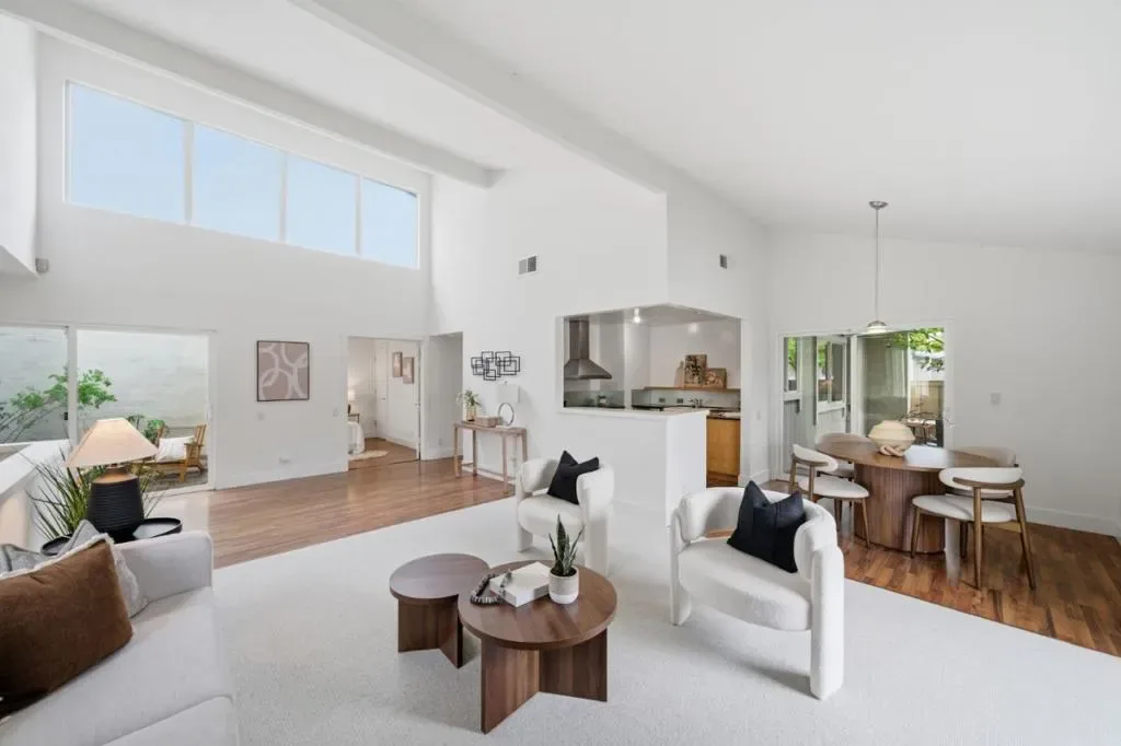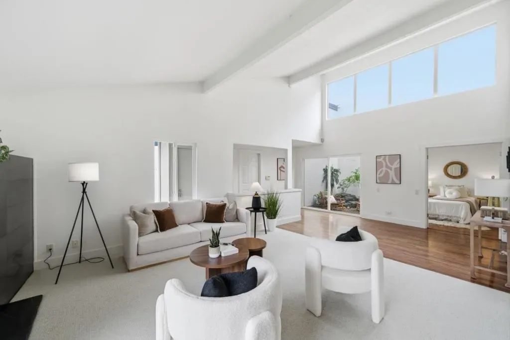 Situated on a desirable corner lot, this beautifully maintained one level 3-bedroom, 2-bath home blends comfort with effortless livability. The dramatic and light filled living room and dining area with soaring cathedral ceilings opens to a private, low maintenance backyard, perfect for indoor-outdoor entertaining. The kitchen and bathrooms incorporate refined, accessibility-focused design elements for enhanced everyday ease. Three spacious bedrooms, one being a lovely ensuite with walk- in closet, create a flexible floorplan to meet a variety of needs. Enjoy the serene central courtyard that creates a peaceful space to relax, along with an attached two car garage with laundry. All of this while being just steps away Foster City’s picturesque walking paths and waterways.