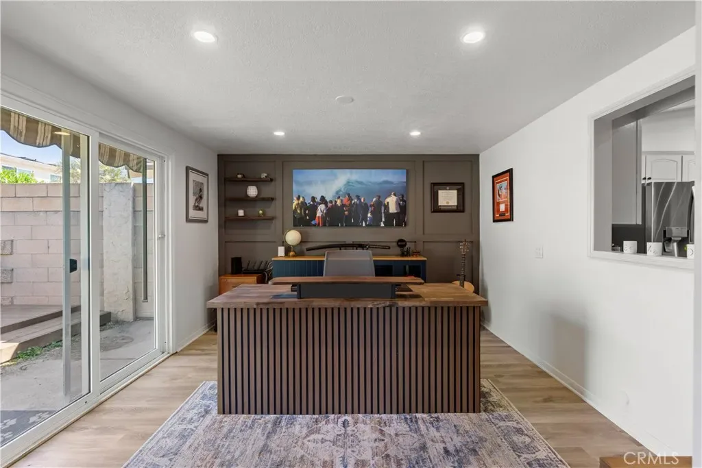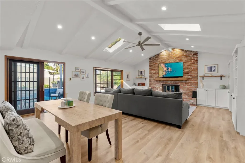 Located on a beautiful interior street in the desirable Century Park neighborhood, this fully upgraded turnkey home offers clean design and effortless indoor-outdoor living. A charming Dutch door opens to a light-filled interior with vaulted ceilings, new luxury vinyl flooring, custom built-ins, and recessed lighting throughout. Upon entry, the open layout includes a welcoming family room, dining area, and remodeled first-floor bathroom. The kitchen features an exposed wood beam ceiling, granite countertops, stainless steel appliances, and opens directly to the main living spaces. Large sliding doors create a seamless connection to the backyard from the main living areas, while the office also opens to a private side yard Trex deck for an additional outdoor area. The main-level primary suite includes direct backyard access and a remodeled en-suite bath with an expanded walk-in shower and smart toilet. Upstairs, you’ll find three secondary bedrooms and a remodeled hall bathroom. Custom closets in the primary and secondary bedrooms provide upgraded storage. The backyard is designed for both entertaining and everyday enjoyment, complete with a pool, spa, multiple seating areas, and mature landscaping for added privacy. Exterior improvements include fresh paint, an Ipe wood front fence, new landscaping with irrigation, updated driveway and pavers, and upgraded front and garage doors. The home also includes upgraded A/C and additional system improvements. Ideally located in Fountain Valley, just minutes from Huntington Beach, top-rated schools, shopping, and dining.