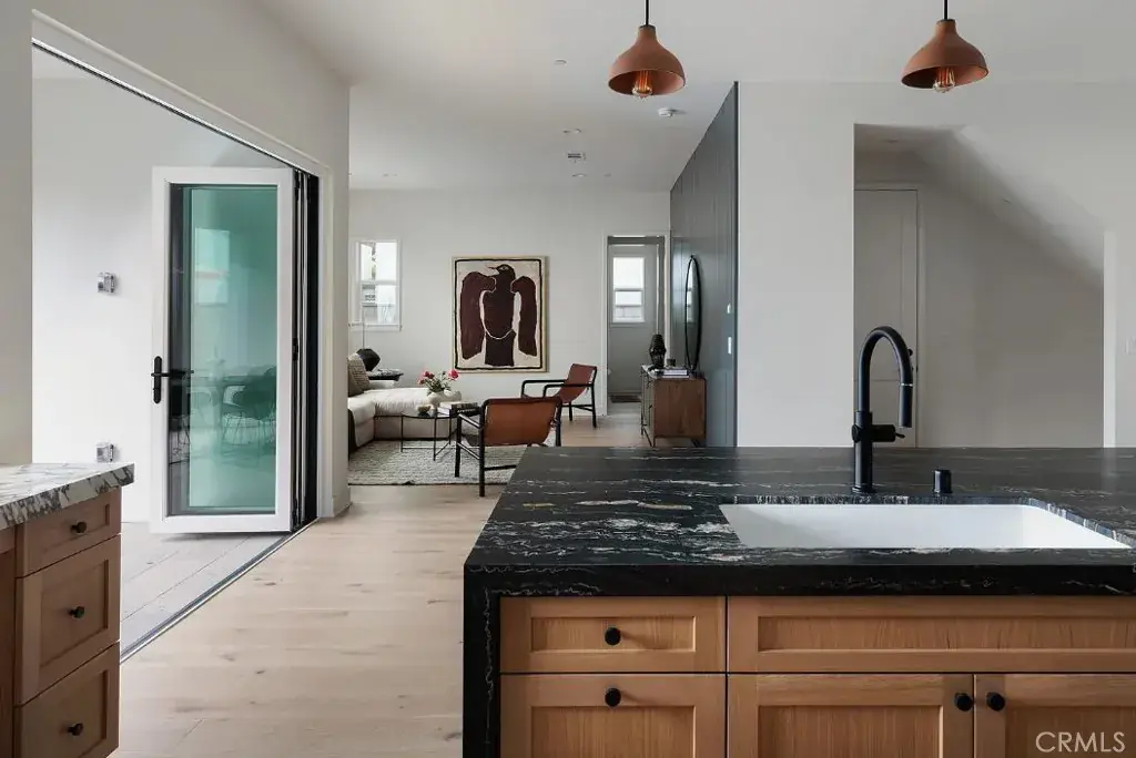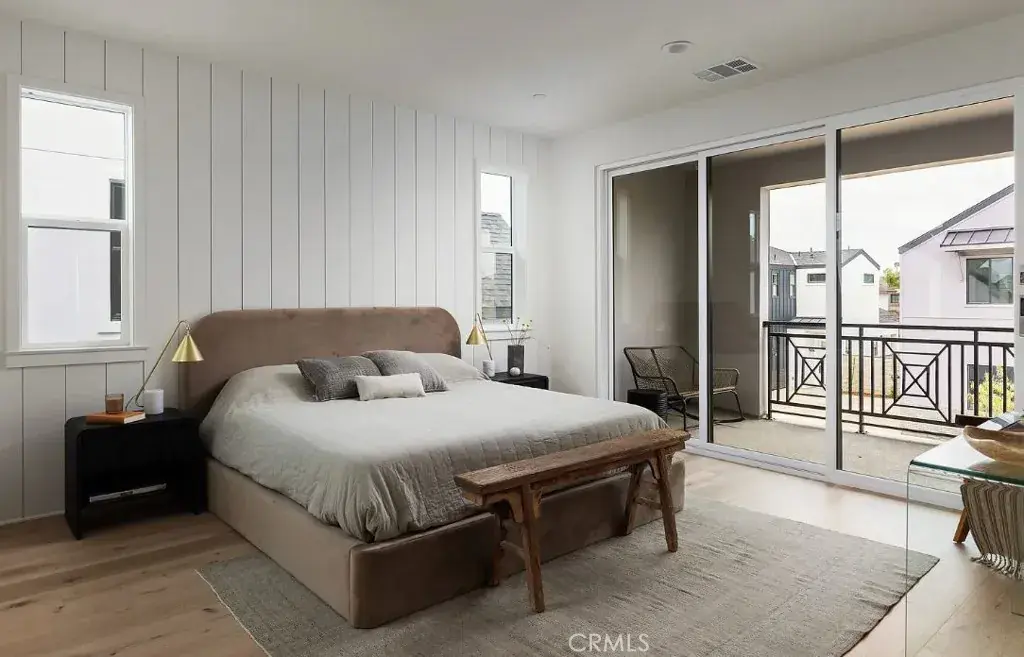 Only two of this plan ever built! Very unique home and design. NEW Two-Story Detached New Home with a quiet interior location of the community built by Bonanni Development – Residents have the choice of the highly acclaimed Huntington Beach or Fountain Valley School district! This exclusive enclave of detached homes is nearly sold out! This home has a large, two story front room with beamed ceilings and a picture window at the entry. The generous kitchen has a large island with pre-wire for your pendant lights included, light wood/beechwood shaker cabinets and thousands in designed selected upgrades including: quartz countertops, 3D White tile backsplash in kitchen, upscale GE Cafe series stainless steel appliances, with a GAS BURNING STOVE, microwave, dishwasher and refrigerator included! Plus a wonderful folding window and bar that leads to the private back yard. There is additional storage off the garage entry and a very private 1/2 bath. Upstairs you enjoy three en-suite bedrooms with upgraded quartz and tile included. The primary suite includes a huge walk-in shower with seat and the luxury of a bathtub and split lavatories. There is an owners sanctuary off the primary suite with it’s private deck. This is the ultimate in convenience and living with a large, upstairs laundry room with sink & countertops plus ample cabinetry for linen storage. Smell the fresh paint and new home warranty! Owners enjoy a private driveway into their two car, direct access garages with ample storage space.