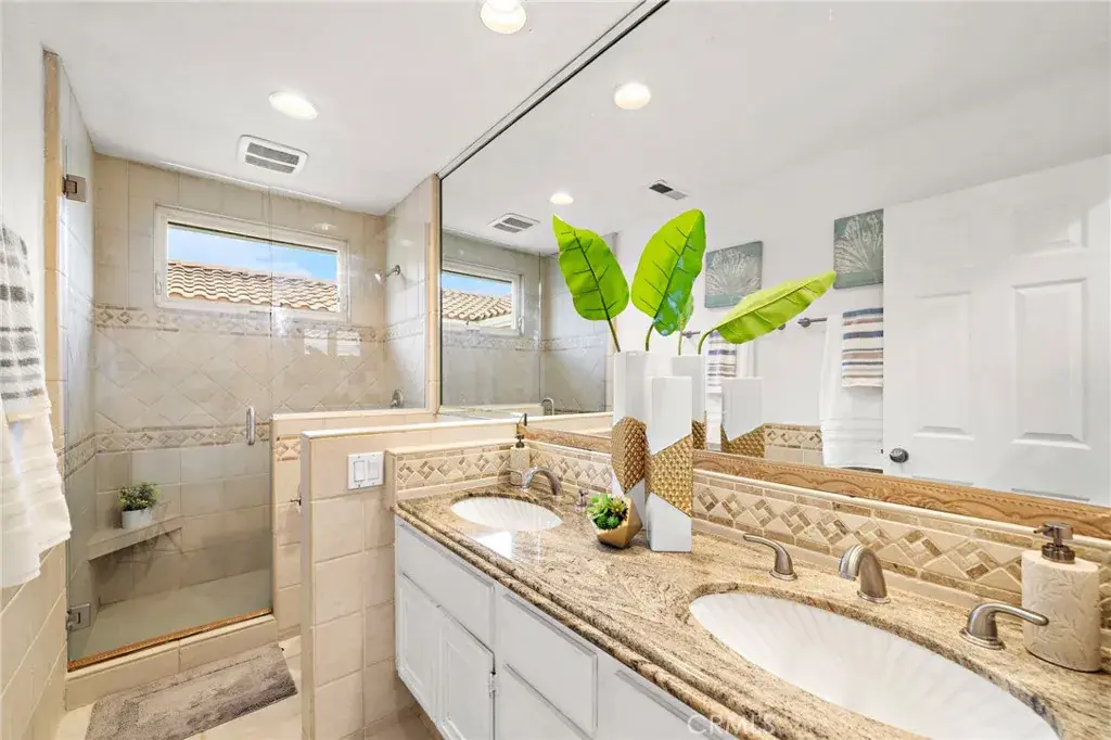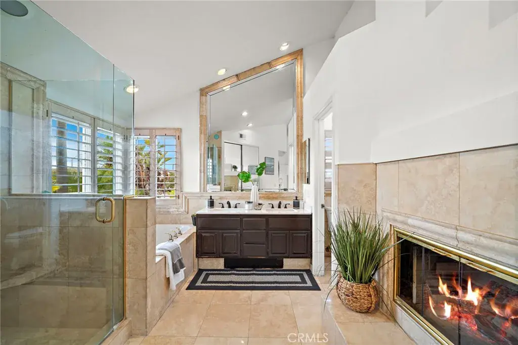 Nestled at the end of a quiet cul-de-sac within an exclusive enclave of just 30 executive homes built in 1988, 4-car driveway provides generous parking and convenience, while the backyard is a true retreat featuring a luxury waterfall pool. Home is ideally located in a top school zone and sits on the largest lot in the neighborhood with 6,459 square feet. Boasting 5 bedrooms and 3 bathrooms, including a downstairs bedroom (currently used as an office) and full bath, this home offers a highly desirable and functional floorplan with soaring two-story ceilings, enormous windows for abundant natural light, brand new carpet, and new central A/C. Beautifully appointed throughout, it features travertine-style tile flooring across the lower level, dual pane windows, plantation shutters, recessed lighting, arched passages, décor niches, custom mirrored walls, raised panel interior doors, mirrored closets, and ceiling fans. Entry begins through a large gated courtyard with tranquil waterfall, lawn, and paver walkway leading to a stunning front door adorned with full beveled leaded glass. Inside, a grand foyer welcomes you to elegant formal living and dining rooms and an upgraded kitchen showcasing granite countertops, travertine backsplash with granite inlay, brand new stainless appliances and a sunny eat-in morning room that opens to the inviting family room with gas fireplace. A dramatic hand-crafted hardwood staircase leads upstairs to a luxurious primary suite retreat featuring a two-sided fireplace, sitting area, walk-in closet, private balcony overlooking the tropical backyard, and a spa-style bath with oval soaking tub, separate shower, and dual sinks. Three additional spacious bedrooms and a hall bath with dual sinks and travertine tub/shower complete the upper level. The backyard is a true private resort with sparkling pool, spa, multiple waterfall features, custom travertine-style paver decking and pool surround, lush tropical landscaping, and mature palm trees swaying in the ocean breeze. Entertain in style at the custom built-in BBQ center with long sit-up bar seating (structure in place, no appliances) beneath one of two shade awnings. An inside laundry room offers direct access to the finished garage with epoxy flooring and extensive custom built-in storage.