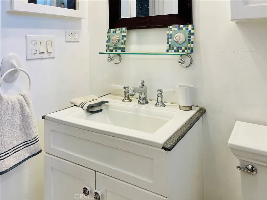 The lower level has its own private entrance, as well as convenient interior access via the staircase. Here you’ll find two additional bedrooms with beamed ceilings and ceiling fans, a full bathroom with tile flooring and a jetted tub, a separate living room, and a laundry room. This space can easily be converted back to a 2-unit home with 2 bedrooms and 1 bath each.