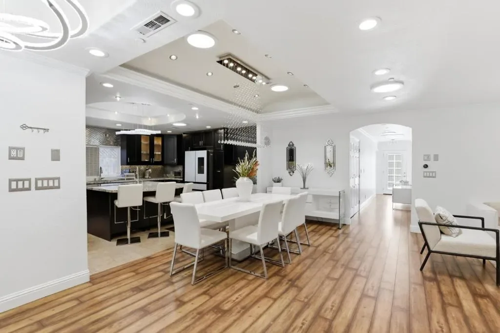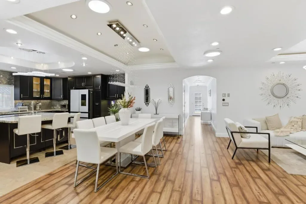 Welcome to 40489 Davis Street, a rare single level residence in the heart of Fremont. Offering 5 bedrooms, 3 bathrooms, and approximately 2,104 sq ft, this home blends elegance, comfort, and modern functionality. The open concept layout is filled with natural light and designed for seamless everyday living and entertaining. A spacious ~300 sq ft kitchen features granite countertops, double sink, gas stove with induction cooktop, custom cabinetry with organizers, and a double full stack pantry. The primary suite offers a spa like retreat with quartz counters, double sinks, steam and double shower cabin, two jacuzzies, and heated smart toilets with remote washlets. Additional bathrooms are equally well appointed. Highlights include 10 sun tunnel skylights, custom ceiling lighting, IKEA closets with built in organizers, dual outdoor tankless water heaters rated at 200,000 BTU, and a whole house water filter and softener system.Step outside to a serene backyard ideal for relaxing or entertaining. A 4 car driveway adds convenience. Ideally located near top rated schools, shopping, dining, and major commute routes, this home offers comfort, functionality, and modern living at its finest.