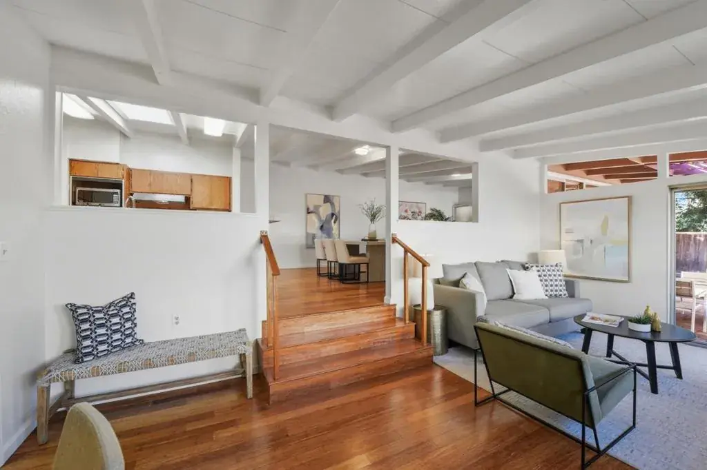 Welcome to this charming 3-bedroom, 2-bathroom home located in the vibrant city of Fremont. Spanning 1,447 square feet, this residence is perfect for those seeking comfort and convenience at the top school district. The gourmet kitchen is including a 220 Volt Outlet, electric cooktop, synthetic countertops, and built-in oven range. It also features a dishwasher, garbage disposal, hood over range, microwave, and refrigerator. The open floor plan provides abundant natural lights. The home boasts a kitchen/family room combo, providing a seamless space for dining and entertainment. Enjoy the cozy ambiance of the fireplace, with central forced air-gas heating ensuring comfort year-round. The flooring is a tasteful combination bamboo flooring, adding elegance throughout the home. The beautiful and quiet backyard w/o neighbors. Additional amenities include in-utility room laundry with electricity hookup and a washer/dryer. The property sits on a minimum lot size of 6,000 square feet with a 2-car garage. It is located within the Fremont Unified School District, Walk to the Historic Creek Trail.