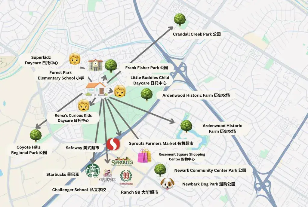 Welcome to this beautifully updated 3-bedroom, 2.5-bath single-family home in Fremonts prestigious Ardenwood neighborhood with top-rated schools! On the ground floor, the bright and airy living room features soaring vaulted ceilings and flows seamlessly into the adjacent dining area ideal space for both everyday living and entertaining.The spacious kitchen is a chefs delight, showcasing stainless steel appliances, granite countertops, and abundant cabinetry for ample storage. From the living room, step directly into the low-maintenance spacious backyard, perfect for outdoor relaxation or hosting family and friends. Upstairs, the luxurious primary suite offers a peaceful retreat with a spacious, modern bathroom and a Walk-in closet. Two generously sized guest bedrooms share a full bathroom, providing comfort and privacy for family members or guests. 2-car garage equipped with a Tesla EV charger. Ideally situated near the historic Ardenwood Farm, this home is within walking distance to Forest Park Elementary and Frank Fisher Park. Enjoy convenient access to the Dumbarton Bridge (Hwy 84), I-880, nearby shopping centers, Facebook HQ, and Google shuttle stops making commuting a breeze. Super LOW HOA! Don’t miss this exceptional opportunity ! Come to see it today and make it your own!