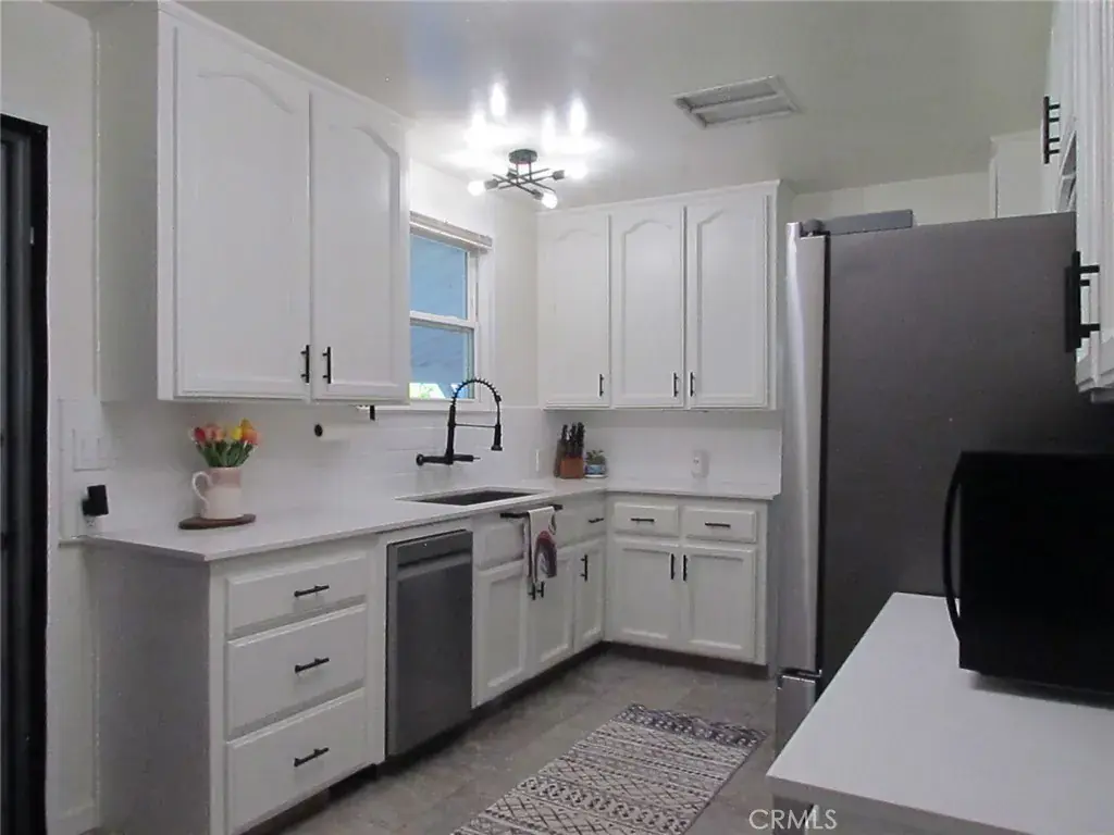 The remodeled kitchen feels bright and uplifting, showcasing new, cheerful cabinetry and sleek, easy-clean quartz countertops that make cooking and cleanup a breeze. Bonus the stainless steel refrigerator & stove approximately 2 years old is included!