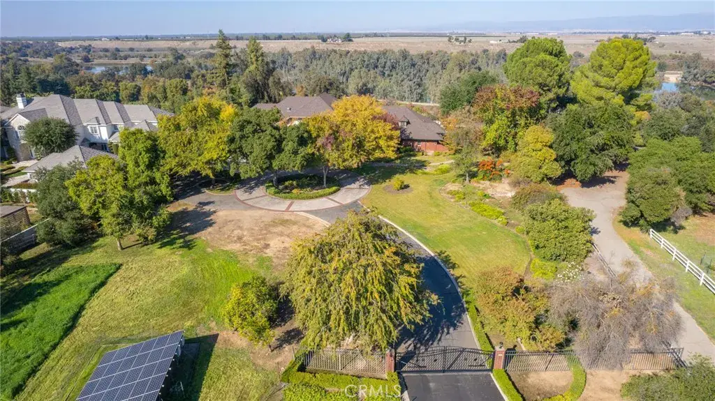 Perched majestically on 1.94 acres along the Fresno Bluffs, this one-of-a-kind estate captures panoramic views of the San Joaquin River and distant foothills. Set within a prestigious gated enclave and secured by its own entry gate, the property offers exceptional privacy, tranquility, and sophistication. Mature landscaping, timeless architecture, and impeccable craftsmanship create a private retreat that embodies the essence of refined living. A grand entryway welcomes you with parquet-style hardwood floors showcasing intricate geometric detailing and rich tones that set an elegant tone throughout the 6,994 sq. ft. residence. Soaring ceilings and expansive windows flood the interior with natural light, highlighting every curated detail. The formal living and dining rooms reflect an era when elegance was an art formperfect for intimate gatherings or grand entertaining. The gourmet kitchen features expansive granite countertops, custom cabinetry, and premium built-in appliances that speak to the home’s exceptional quality. An inviting breakfast nook overlooks the backyard, while a butler’s pantry, large laundry room, and direct access to the four-car tandem garage with workshop add everyday practicality. The family room exudes warmth and grandeur with wood-beamed vaulted ceilings, a brick fireplace, and a built-in wet bar, all enhanced by floor-to-ceiling windows framing breathtaking bluff and river views. The main-floor primary suite is a private sanctuary with serene river vistas, dual walk-in closets, and a spa-inspired marble bathroom featuring a soaking tub and oversized shower, all bathed in natural light. A stately home office with custom wood paneling, built-ins, and a fireplace offers a refined workspace with a tranquil bluff side view. Upstairs, three spacious bedrooms each feature a private balcony, en-suite bath, and walk-in closet, while the game room serves as a dramatic centerpiece for leisure and entertaining with vaulted ceilings, a fireplace, wet bar, and custom pool table. Outdoors, the estate lives like a private resorta sparkling pool, manicured lawns, and covered outdoor kitchen with bath and changing room provide the perfect setting for year-round gatherings. Solar panels, new carpet, and fresh paint enhance comfort and sustainability. Solar panels, new carpet, and fresh paint enhance comfort and sustainability. This remarkable Fresno bluff estate is more than a home-it’s a statement of style, craftsmanship, and timeless luxury.