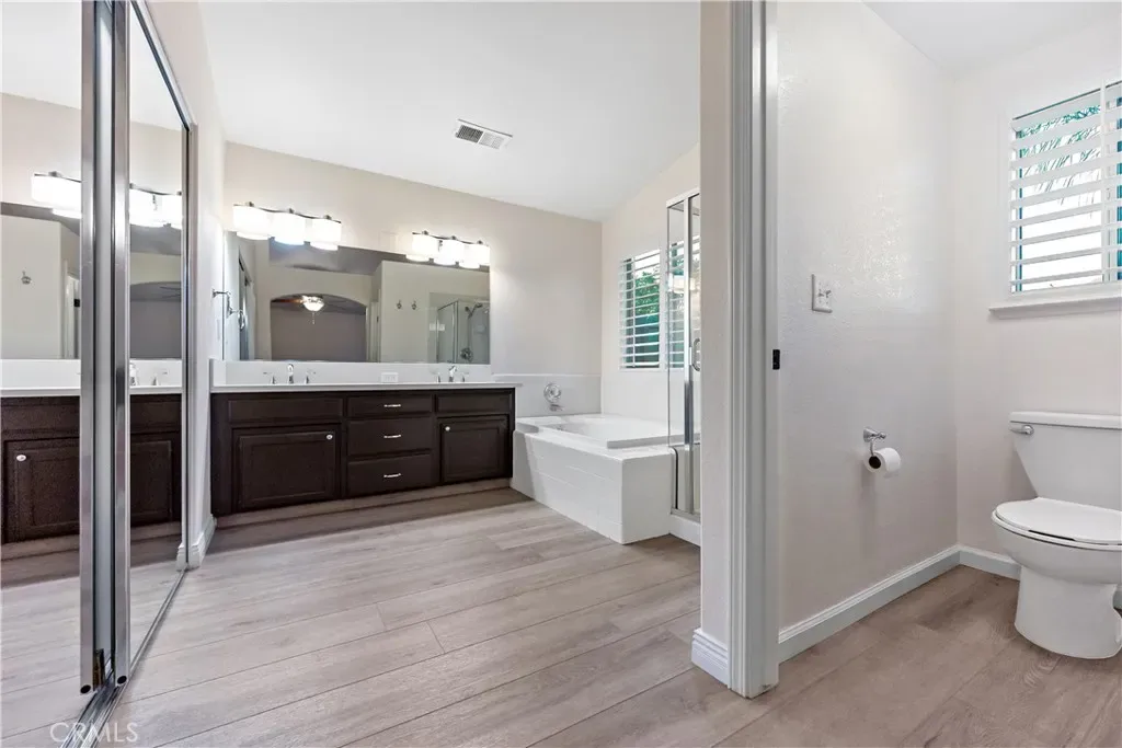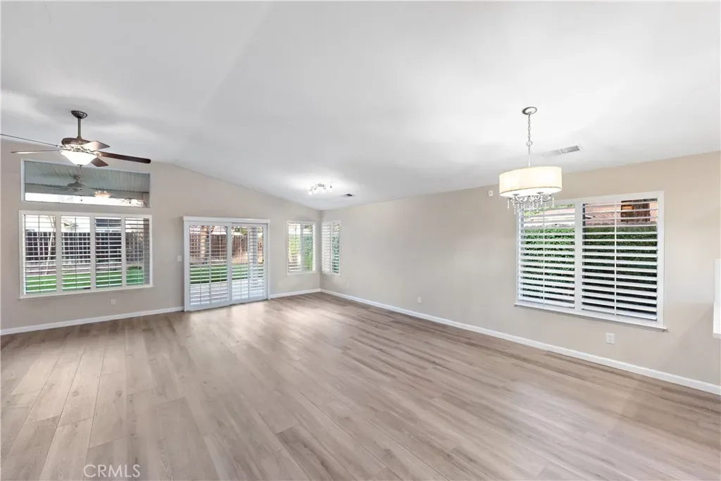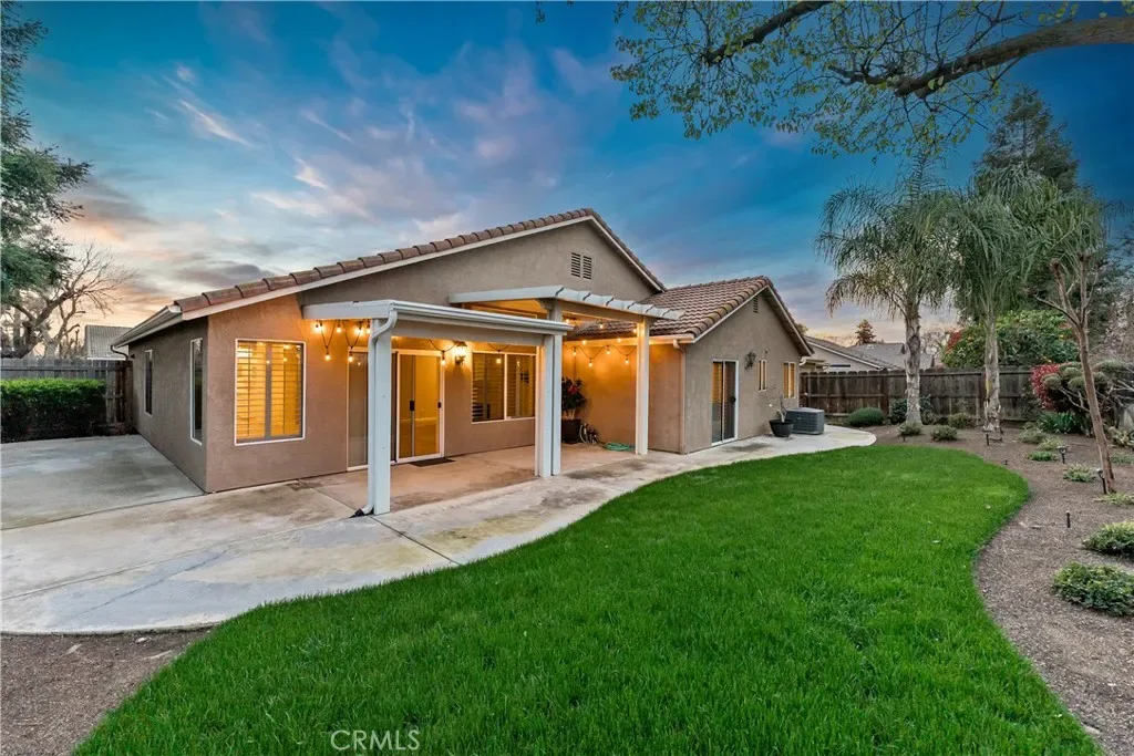 Meticulously maintained and beautifully updated, this elegant Fresno residence offers light, airy interiors and quality improvements throughout. The home features upgraded quartz countertops in the kitchen and bathrooms, complemented by stainless steel appliances and tasteful under-cabinet ambiance lighting that enhances both function and style. The living room showcases impressive vaulted ceilings that create a dramatic sense of space and architectural character, while skylights and beautiful chandeliers fill the home with warmth and natural brightness. Plantation shutters throughout provide a polished, cohesive look and added privacy.