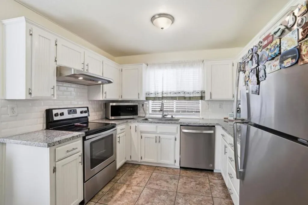 Welcome to this spacious and inviting home located in a well-established Fresno neighborhood. Offering approximately 1,905 sq ft of living space, this residence features a versatile floor plan with multiple living areas, ideal for both everyday living and entertaining. The home includes a flexible bonus room that can serve as a home office, guest room, or additional bedroom. Recent updates include fresh interior paint, newer carpet, granite countertops, custom backsplash, and stainless steel appliances, creating a modern and move-in ready feel. The cozy living room with fireplace provides a warm gathering space, while the layout offers separation and functionality for growing households or multi-use living. Enjoy the spacious laundry room & a well manicured backyard with overgrown trees which offer lots of shade.