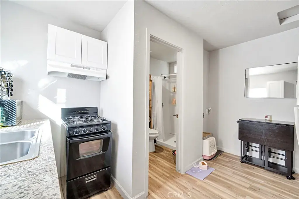 The main residence offers approximately 1,200 sq. ft. of living space with updated flooring, dual-pane windows, and a remodeled kitchen featuring granite countertops, gas appliances, and modern finishes. The bathroom has been fully renovated. The isolated 4th bedroom provides flexibility and was previously used as a studio; plumbing is capped and ready for future use.