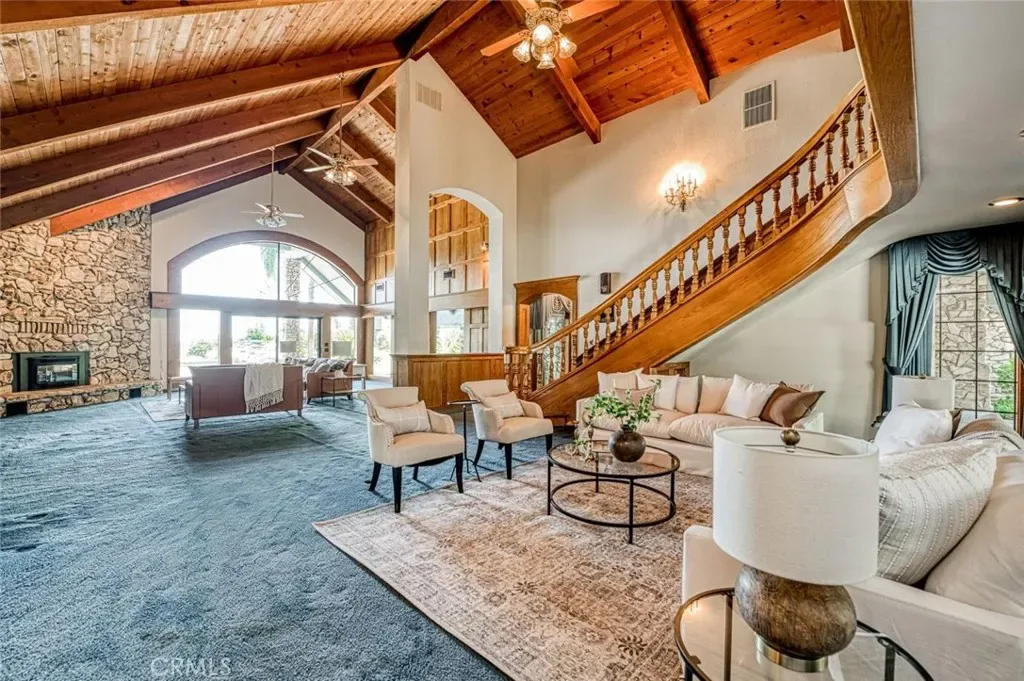 Artfully Designed Luxury Meets Resort Living on 2 Acres. Set alongside the 3rd hole of Belmont Country Club, this 6,538 sq ft custom estate is a masterclass in craftsmanship and design. Step through grand double doors into a soaring barrel-ceiling entry, where tongue-and-groove ceilings, arched passageways, and floor-to-ceiling windows create a sense of space and light. The formal dining room features handcrafted woodwork and serene views of lush greenery. Designed for both everyday comfort and unforgettable entertaining, this home offers 4 bedrooms, 3 full baths, 2 half baths, a formal living room, family room with a dramatic stone fireplace wall, and a game room. Throughout the home, you’ll find extensive custom stonework, including floor-to-ceiling stone columns and a striking stone entry wall that makes a bold first impression. Outside, your private paradise awaits complete with a resort-style pool, fountain, gazebo, changing room, and mature orchard producing apples, tangelos, apricots, persimmons, grapefruit, and more. A garden area invites farm-to-table living. Additional features include a 2024 HVAC, cedar-lined closets, dual-pane windows, a 3-car garage, RV garage, and pull-through covered parking near the front entrance. Every inch of this estate speaks to thoughtful detail, timeless design, and elevated living.