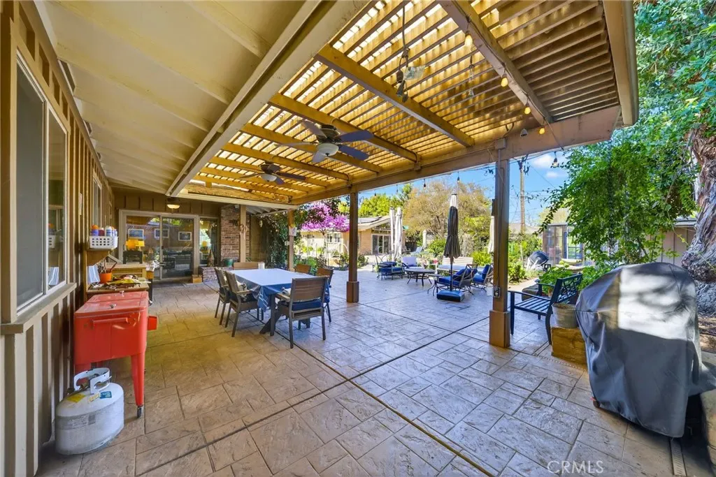 If you enjoy leisurely outdoor time, this backyard retreat checks all the boxes. Fill your afternoons and weekends with gardening as you have multiple gardening boxes with irrigation and timers. A newly constructed green house sits on the rear end of the lot, in addition to a walk-in tool shed/shop for your weekend projects. If relaxation is more of your thing, lay out by the sparkling pool and hang with your guests under the shaded covered patio. The entire patio decking and walkways include custom concrete stamped finishes There is also a relaxing hot tub with direct access to the primary bedroom.