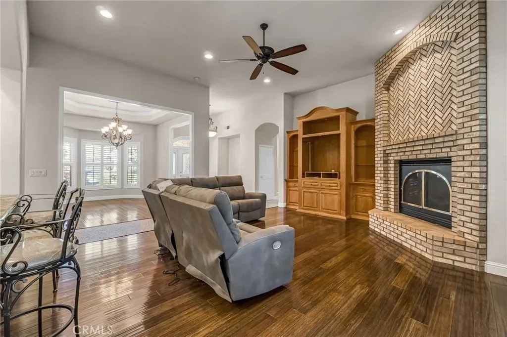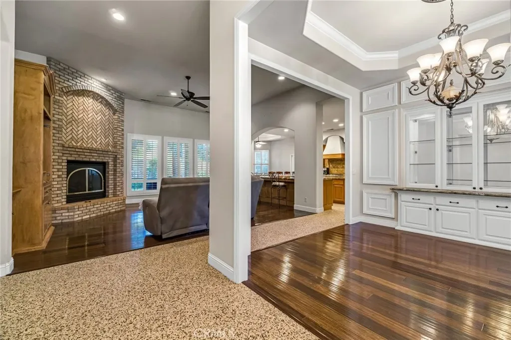 Step through the doors into an inviting layout filled with custom finishes, warm natural light, and refined architectural details. The gourmet kitchen is the centerpiece of the home, showcasing granite countertops, rich wood cabinetry, a spacious center island, and premium built-in appliances, perfect for the home chef and entertaining guests. Adjacent living areas include elegant formal and informal spaces, highlighted by wood flooring, custom built-ins, and a stunning brick fireplace that adds both character and comfort.