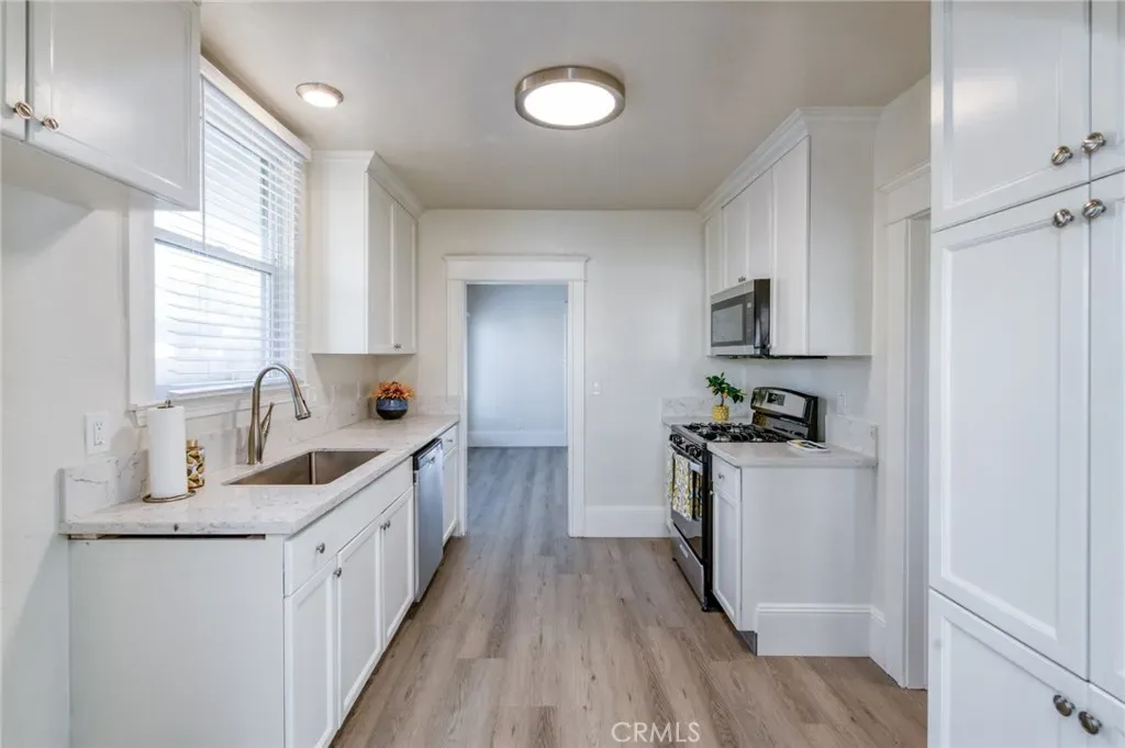 Experience exceptional living in this completely remodeled and updated home minutes from Van Ness. This home features 3 spacious bedrooms and 1 bath, inside laundry room, breakfast nook and formal dining room. The grand formal living room with large fireplace flows into the dining room. The kitchen has all new cabinets, counters, appliances and light fixtures. The home has been redashed on the exterior, a new roof installed and Brand New front drought tolerant landscape for easy care. The interior has been completely painted with new hardware and light fixtures. Out back you have a concrete area, grassy area and the detached garage. The long driveway with new rolling gate adds extra privacy and room for multiple vehicles to park.