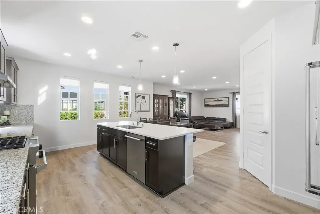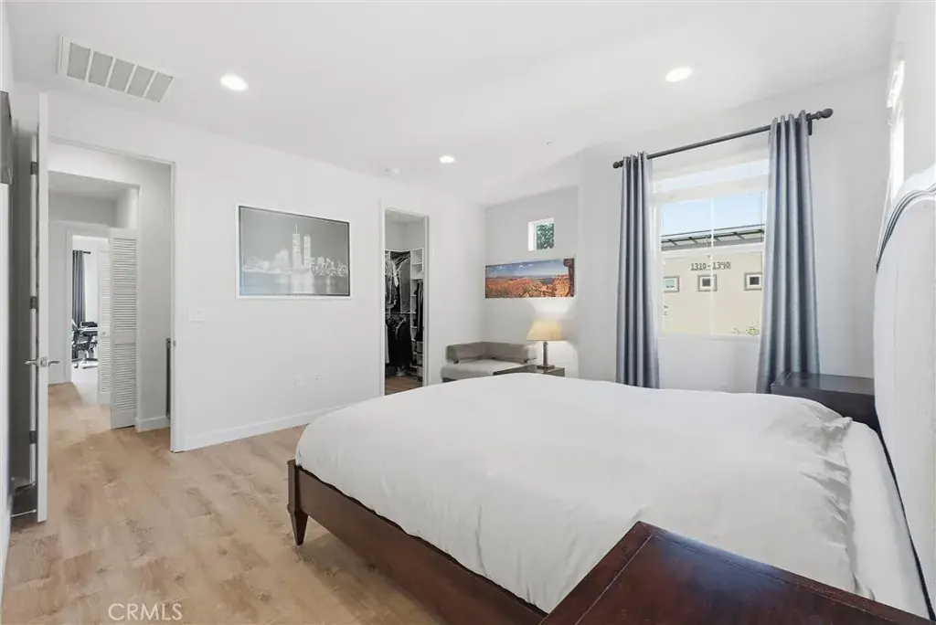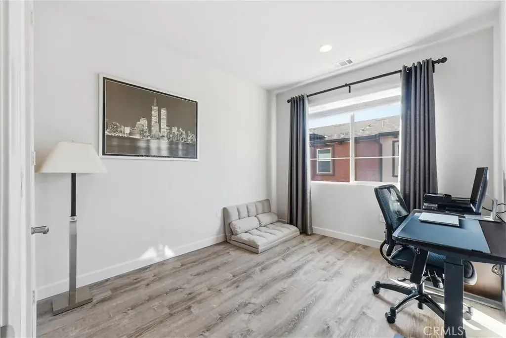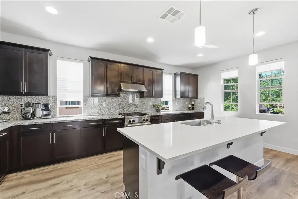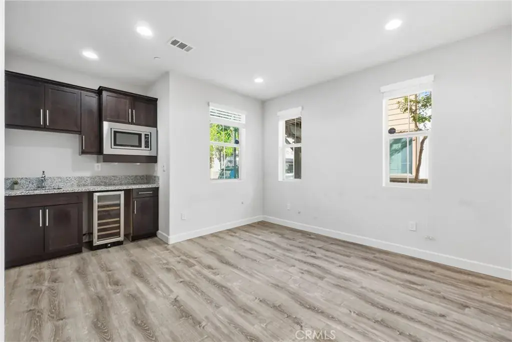 Beautifully upgraded and highly desirable residence located in the sought-after Groves community in the heart of Fullerton. Offering approximately 2,140 SQFT. of stylish, modern living space, this 4BD, 3.5BA home combines comfort, functionality, and designer-level finishes. Step inside, you’ll appreciate the fresh, contemporary feel created by newly painted interiors and wood flooring that adds warmth and durability while maintaining a clean, upscale look. The layout is thoughtfully designed with flexibility in mind, featuring a rare and valuable 1st floor private suite that includes its own kitchenette and full bathroom. This space is ideal for multi-generational living, extended guests, a private home office, or even a long-term stay arrangement while still allowing everyone to enjoy their own level of privacy. Direct access to the attached 2-car garage adds everyday convenience and ease. The 2nd level is the true heart of the home, showcasing an impressive open-concept design that feels both expansive and welcoming. The gourmet kitchen is a showpiece, featuring a built-in refrigerator, upgraded cabinetry, sleek contrasting countertops, and a large oversized center island. Pendant lighting adds a modern touch, while the spacious walk-in pantry provides abundant storage for everything. The kitchen flows seamlessly into the dining and living areas, creating an ideal space for hosting friends and family or enjoying relaxed evenings at home. Just off the main living area, a private balcony offers the perfect outdoor extension great for fresh air, morning coffee. Upstairs, you’ll find 3 additional bedrooms and 2 full bathrooms, thoughtfully arranged to maximize both space and privacy. Primary suite offers a peaceful retreat with ample room. Convenient upstairs laundry area includes washer and dryer. This home is enhanced with numerous upgrades and details throughout. Every level has been carefully maintained and move-in ready. Located near the 91 and 5 freeways, this home provides easy access for commuting while still being tucked into a welcoming residential community. Enjoy close proximity to local restaurants, shopping centers, and entertainment options. Don’t miss this exceptional opportunity to own a stunning, turn-key home in one of Fullerton’s most desirable neighborhoods