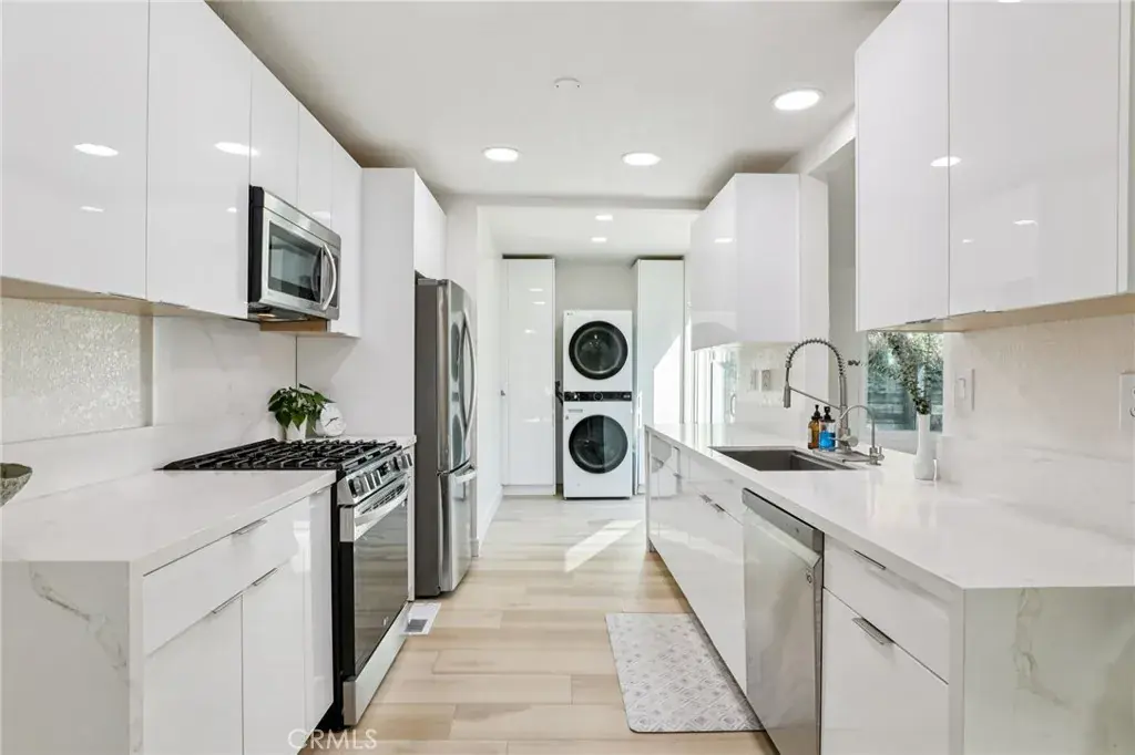 Inside, you’ll find a wonderful mix of vintage charm and stylish updates. The home features luxury vinyl plank flooring, updated doors, custom built-ins, and a beautifully remodeled designer kitchen that serves as the heart of the home. With quartz countertops, custom cabinetry, updated appliances, and clean, modern finishes, the kitchen offers both function and style for everyday living and entertaining. Natural light fills the interior, and a lovely balcony adds a special outdoor retreat perfect for morning coffee or evening relaxation.