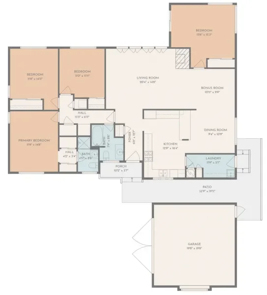 The home features a spacious layout with four bedrooms, including a primary suite with private en-suite bath. Additional highlights include a central kitchen with breakfast counter, formal dining room, separate laundry room with utility sink, and an expansive living room that opens to a flexible bonus space—perfect for a home office, reading nook, or secondary lounge.