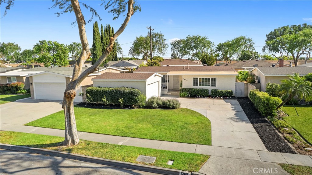 WELCOME TO THIS BEAUTIFULLY UPDATED SINGLE-STORY HOME IN THE HEART OF FULLERTON! This 3-bedroom, 2-bath home offers 1,242 square feet of living space and a perfect blend of modern improvements, functional living, and inviting outdoor space. Featuring over $50,000 in recent upgrades, including a new HVAC system, water heater, main sewer line replacement, bathroom re-pipe, new laundry setup in the garage, and a newly installed patio cover, along with fresh interior paint, luxury vinyl plank flooring throughout, an upgraded irrigation system, and newly installed backyard lawn. Situated on a spacious lot, 1200 W. Ash showcases a light and bright open-concept layout, with a seamless flow between the living and dining areas. Large windows and a sliding glass door fill the space with natural light and provide direct access to the backyard. The updated kitchen features quartz countertops, ample cabinetry, and newer appliances including a recently installed stove/oven and microwave. It also offers convenient access to a private gated courtyard that wraps around to the backyard, creating ideal indoor-outdoor living. A hallway with built-in storage leads to all three bedrooms and two full bathrooms. The spacious primary suite includes a large mirrored closet and an en-suite bathroom with a walk-in shower and vanity. Secondary bedrooms offer mirrored closet doors and large windows overlooking the backyard, while the secondary bathroom includes a walk-in shower and additional storage. The backyard is perfect for relaxing or entertaining, complete with a covered patio with outdoor fan, lush new grass, and a variety of mature fruit trees. The property also features an extended driveway leading to a two-car garage with washer and dryer hookups. Conveniently located near Downtown Fullerton, local parks, shopping, dining, and Cal State Fullerton. With extensive upgrades, versatile living spaces, and a desirable location, this move-in ready home presents a fantastic opportunity.