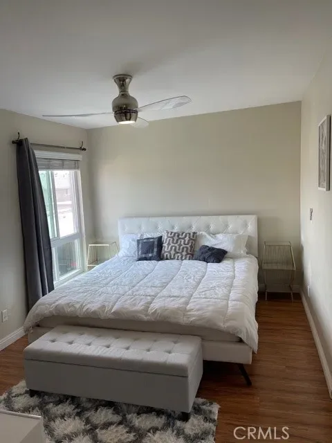 Beautiful Arbor gated community- 1 Bedroom, 1 Bath unit has a remodeled kitchen with newer cabinets, grey colored quartz and glass back splash. Newer stainless steel appliances, wood laminate flooring throughout, newer bathroom vanity with quartz counter top. Newer double pane windows and washer and dryer in the storage unit on the patio. Ceiling fans keep the home cooler. Master bedroom ha a nice walk-in closet. HOA pays for the water & trash. This very private and secure community offers a beautiful pool & spa. 57 & 91 freeways are close and near Cal State Fullerton.