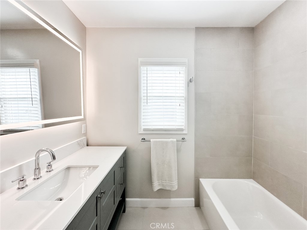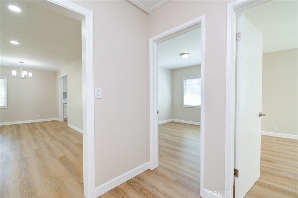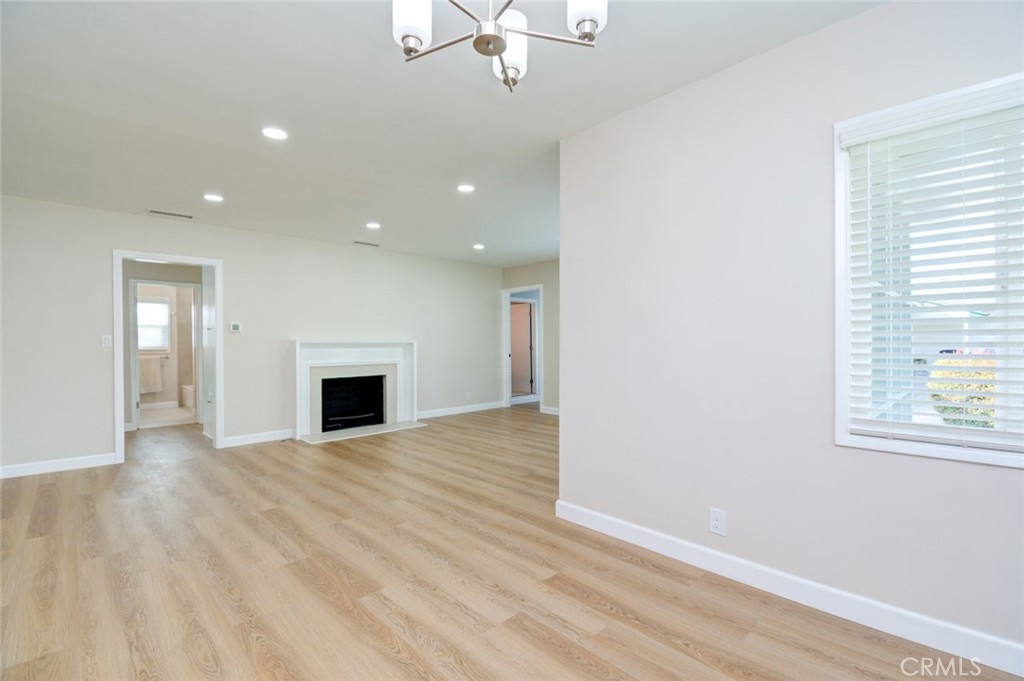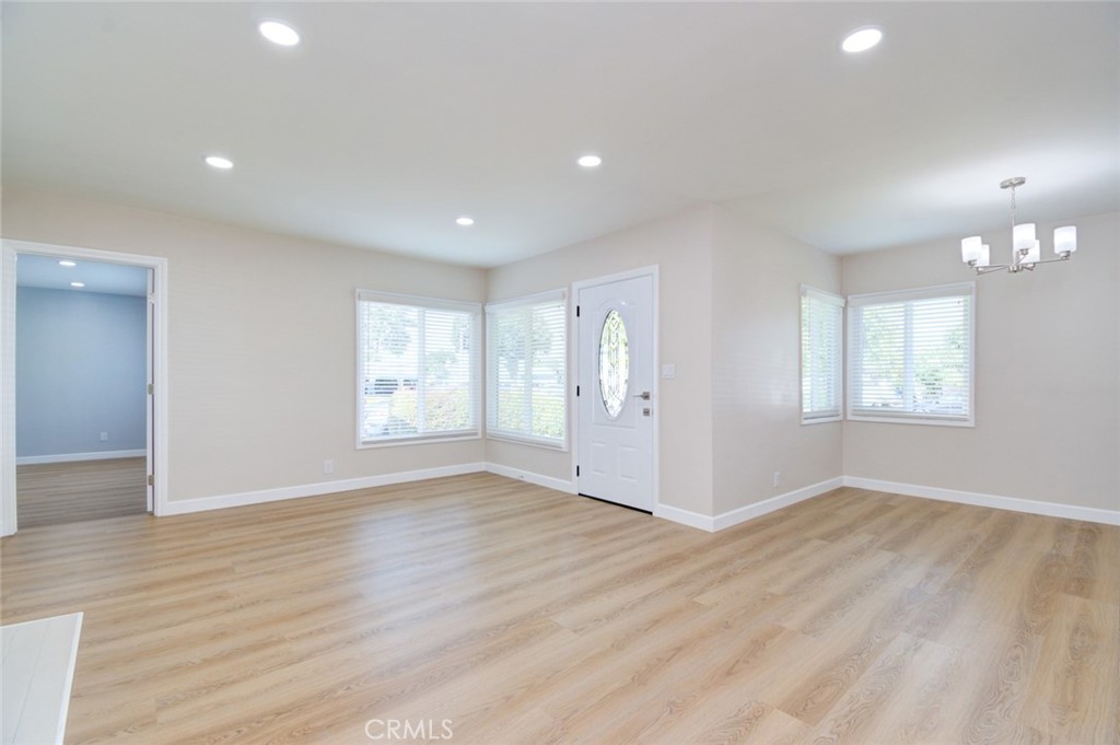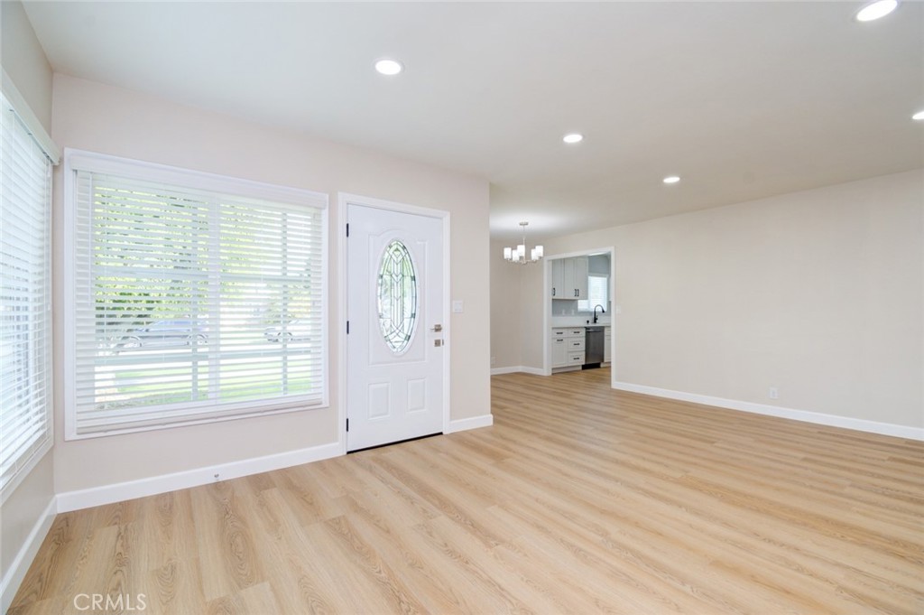 This home’s remodel includes Sahara Matte Porcelain flooring in both bathrooms, maple beige laminate hardwood flooring throughout, new windows, new blinds, new bedroom doors, a new entry door, new baseboards, and designer paint throughout. Recessed lighting has been added to the living room, kitchen, and primary bedroom. The entire home has been updated with new outlets and switches.