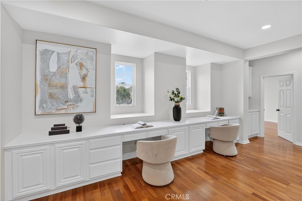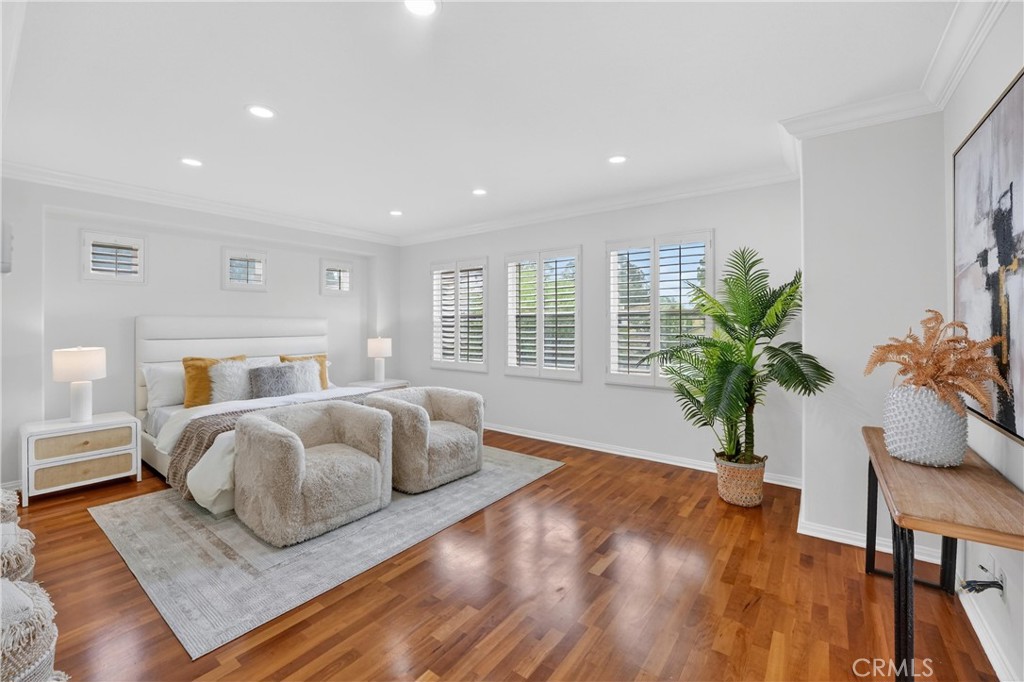 Highly desirable Parkhurst Gated Community living at its finest. One of the only properties in Parkhurst having two Master Suites with the first-floor suite fully custom built out adding an additional 219 sqft. Tucked away on a quiet cul-de-sac, this exceptional five-bedroom residence with two true primary suites offers one of the most sought-after floor plans in the neighborhood—designed for flexibility, comfort, and effortless entertaining. An impressive foyer with soaring ceilings sets the tone upon entry, flanked by formal living and dining rooms that create a gracious sense of arrival. The heart of the home opens into a spacious great room where the family room, gourmet kitchen, and breakfast nook come together seamlessly. The kitchen features an island and countertops, abundant cabinetry, a built-in desk area, a generous walk-in pantry with organized drawers, and a separate laundry room complete with storage and a sink. The first-floor primary suite is a standout—ideal for multigenerational living and includes an organized walk-in closet and full downstairs bathroom. Upstairs, a second expansive primary suite features plantation shutters, dual sinks, a vanity, a deep soaking tub and walk-in closet. Additional upstairs highlights include a custom wood staircase with wrought iron railings, wood flooring throughout the hall and bedrooms, a built-in office at the landing, Jack-and-Jill bedrooms, and an additional private ensuite—perfect for guests or teens. Outdoors, the backyard is designed for both relaxation and entertaining, featuring a covered patio, expansive grassy area, mature fruit trees, and a built-in BBQ—your own private retreat. All of this is set within the unparalleled Parkhurst Community, known for its park-like ambiance, wide tree-lined streets, and beautifully landscaped walkways. Residents enjoy access to three pools, two spas, a clubhouse with a full kitchen for private events, tennis courts, a putting green, basketball courts, two playgrounds, and extensive walking trails. Just steps away from Tri-City Park with its scenic lake, and located within one of the area’s top school attendance zones, this home also offers the added benefits of low HOA dues and no Mello-Roos. This is more than a home—it’s a lifestyle, in one of Fullerton’s most coveted gated communities.