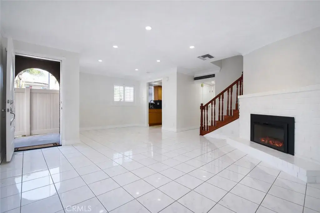 dining areas. The inviting living room showcases glossy tile flooring and a cozy