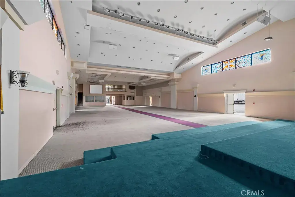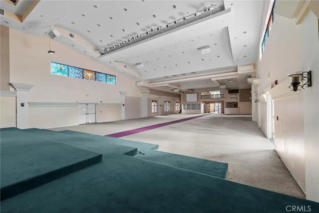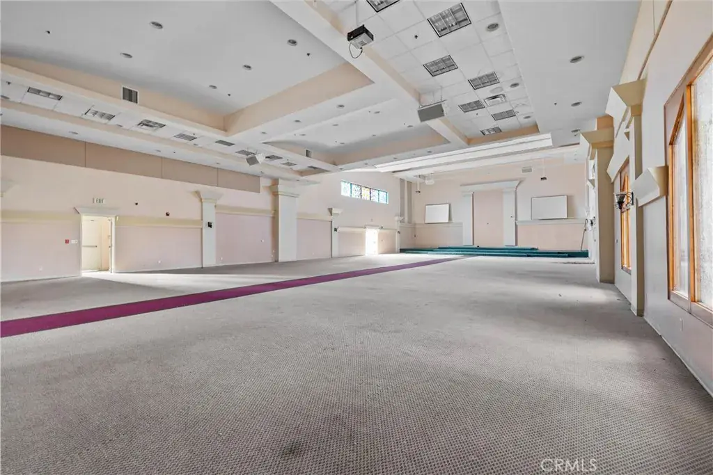 Excellent commercial/mixed-use opportunity in Garden Grove. This prominent corner lot features a free-standing building of approximately 9,036 SF situated on an expansive ±47,916 SF parcel, zoned MU-1, allowing for both commercial and residential mixed-use development. The existing structure offers versatile potential, with prior use as a church and flexible configurations to accommodate alternative uses. The property includes a religious assembly area with split-height ceilings (approx. 17–26 ft), internal loft, second-floor office space, multiple multi-purpose rooms, private offices/classrooms, and multi-fixture restrooms on both floors. Additional highlights include two interior stairways, exterior-access side room, iron perimeter fencing, and a paved parking lot supporting approximately 92 vehicles. The building is currently vacant and provides no financials (1% placeholder). Preliminary plans have been prepared for a 40-unit townhome development (approx. 47,720 SF / 1,193 SF avg. per unit), offering an excellent value-add redevelopment opportunity at Garden Grove Blvd. and Coast St., benefitting from strong traffic visibility and accessibility.