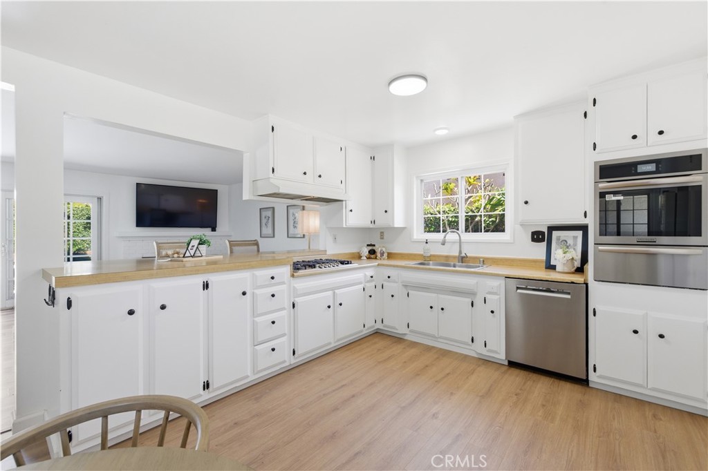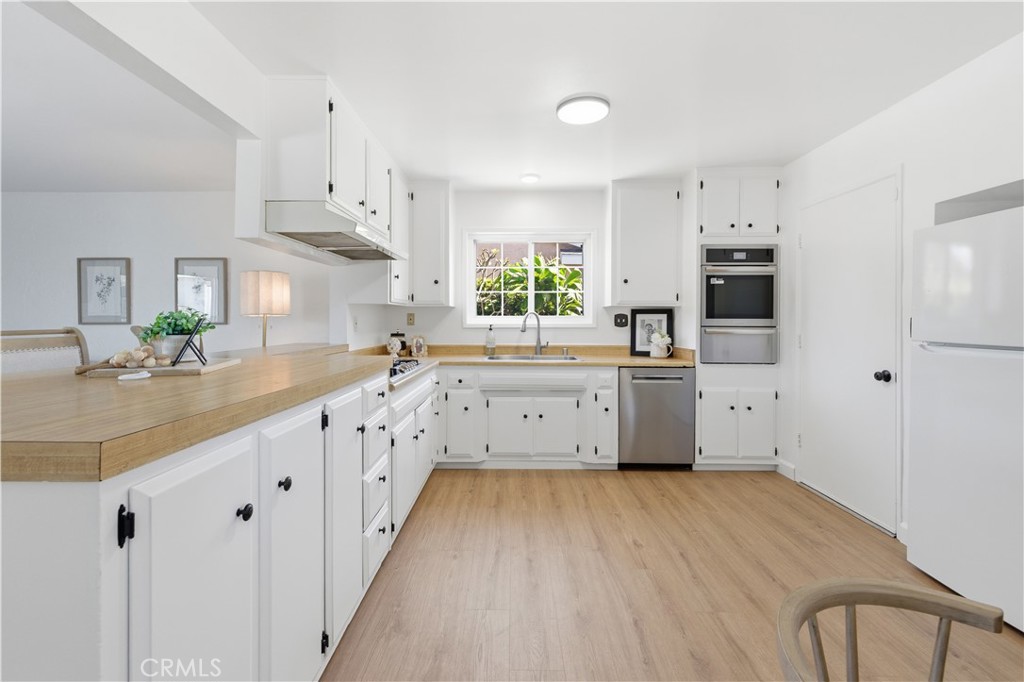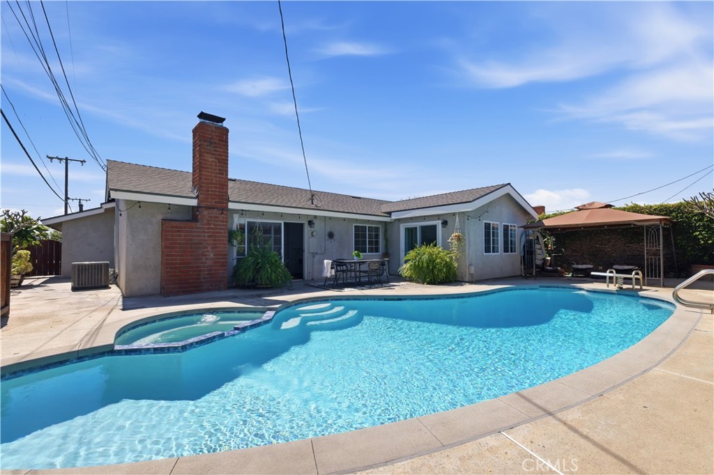 Beautifully upgraded West Garden Grove home featuring 3 bedrooms, 2 bathrooms, and a versatile den/bonus room—currently used as a 4th bedroom. Light, bright, and open with luxury vinyl flooring throughout, this home offers a spacious living room with a cozy fireplace and an updated kitchen that opens seamlessly to the main living area. Sliding doors lead to the backyard with a patio and pool, creating an ideal indoor-outdoor flow. The bonus room also features direct backyard access, perfect for guests, a home office, or additional living space. Additional highlights include central air conditioning, a newer roof, fresh interior paint, and updates throughout. Conveniently located near highly rated schools, shopping, dining, and freeway access.