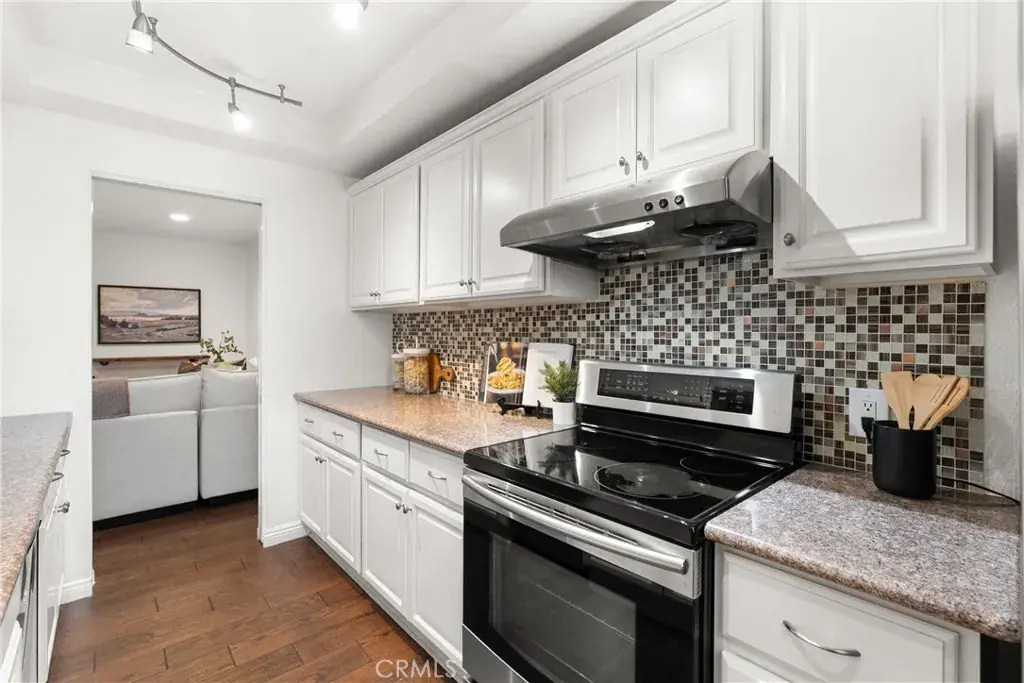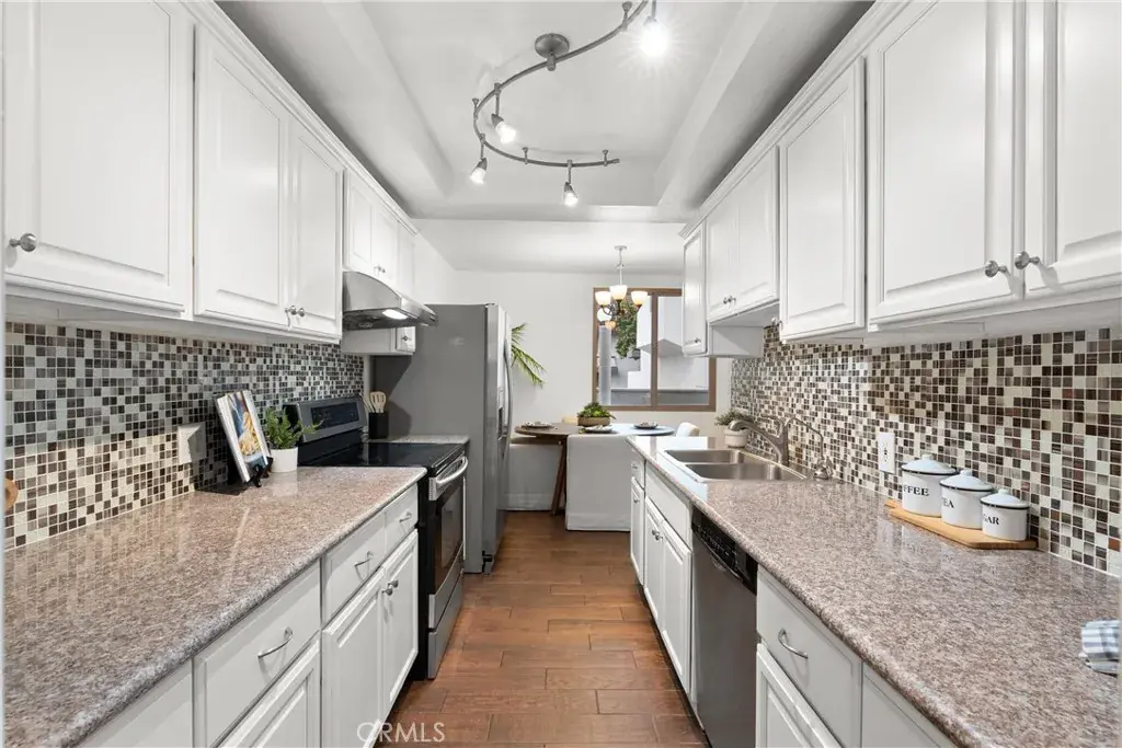 West Garden Grove townhome in a gated condo complex located across from Pacifica High School. Both bedrooms have their own private baths. Nicely updated with double pane windows. Granite counters and modern backsplash in kitchen. Bathrooms are beautifully upgraded. Enjoy the patio right outside the living room. There are walking paths throughout the complex and a gated pool and spa area includes a BBQ spot. There are two assigned parking spots below the unit in the sub parking on is covered and one in the open. Both spots are #74 and #74.
