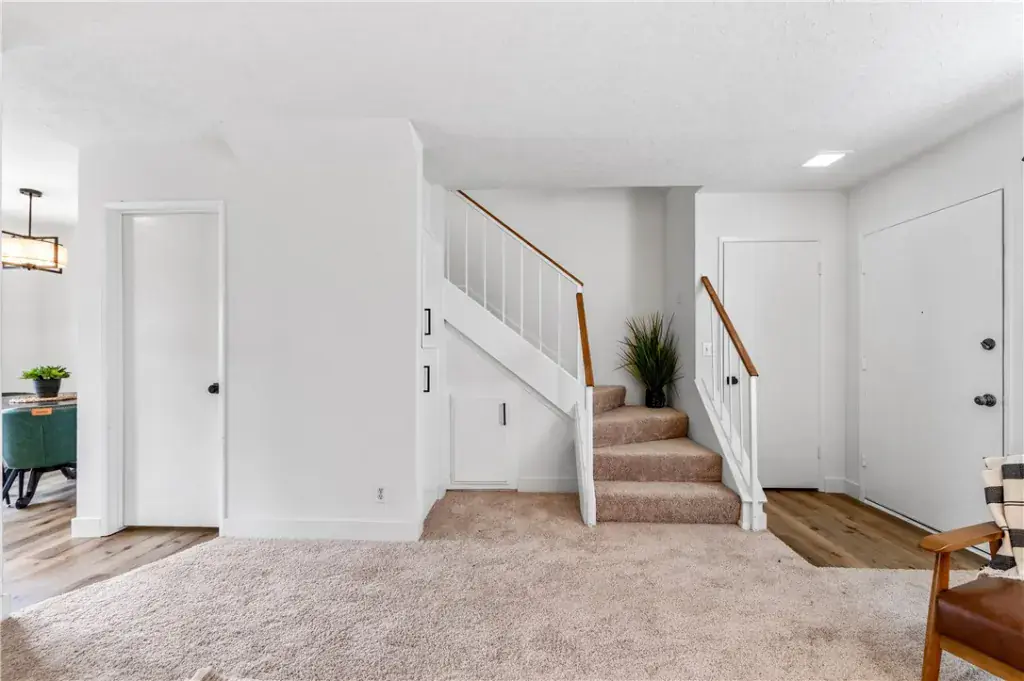 Recent updates include new flooring, new carpet, fresh interior paint, updated lighting fixtures, and select new appliances, making this home truly move-in ready. Upstairs features one exceptionally spacious bedroom along with a second well-sized bedroom and a large full bathroom.
