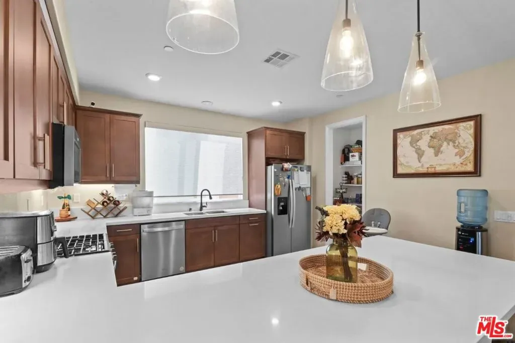 Welcome to this beautiful and elegant three-level townhome ready for its next owner, ideally situated in the heart of Gardenaone of the South Bay’s most vibrant and culturally rich cities, known for its more than 240 restaurants offering wonderful cuisine from around the world. This thoughtfully designed 3-bedroom, 3.5-bath townhome offers exceptional versatility and modern comfort. Entry through the front patio or directly from the spacious side-by-side two-car private garage into the foyer. There you will find a versatile bedroom and bathroom, perfect for guests, a home office, gym, or cozy den. The bedroom opens into the patio for that indoor/outdoor experience perfect for BBQs, morning coffee, or unwinding after a long day. The second level is the heart of the home, featuring an open-concept living room, dining area, and kitchen with high ceilings and abundant natural light. The magnificent kitchen showcases quartz countertops, stainless steel appliances, ample wood cabinetry, a large pantry, recessed lighting, and an oversized quartz island that functions beautifully as a breakfast bar or entertaining hub. A conveniently located powder room sits near the stairs, ideal for guests. The third level hosts two spacious en-suite bedrooms. The luxurious primary suite features a large walk-in closet and a spa-inspired bathroom with dual sinks, a separate soaking tub and shower, and a private toilet room. The secondary bedroom includes its own full bathroom, offering privacy and comfort for family or guests. Here you will also find side by side washer dryer hookups. Located just minutes from the beach cities, SoFi Stadium, Intuit Dome (Clippers Arena), LAX, and Downtown Los Angeles, this home also provides quick access to Del Amo Fashion Center, Target, Albertsons, Sam’s Club, and countless local coffee shops and eateries. Commuters will appreciate the proximity to the 110, 405, 105, and 91 freeways. Set within a desirable gated community featuring low HOA fees, a children’s play area, and ample guest parking, this beautiful and cozy townhome presents a rare opportunity to own in one of Gardena’s most sought-after neighborhoods. Don’t miss your chance to make this exceptional property your next home.