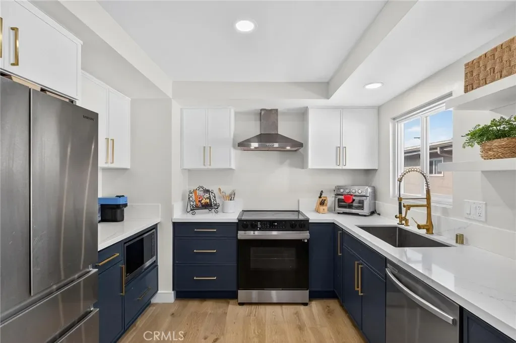 Remodeled and move-in ready, this 2-bedroom, 2-bathroom condo in the gated Merit Manor community offers style, comfort, and convenience in one of Gardena’s most accessible locations. Interior upgrades include engineered hardwood flooring, fresh paint, new interior doors, and a fully renovated kitchen with two-tone cabinetry, quartz countertops, and stainless steel appliances.