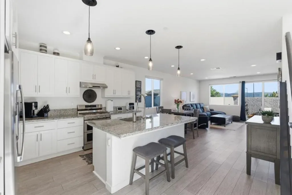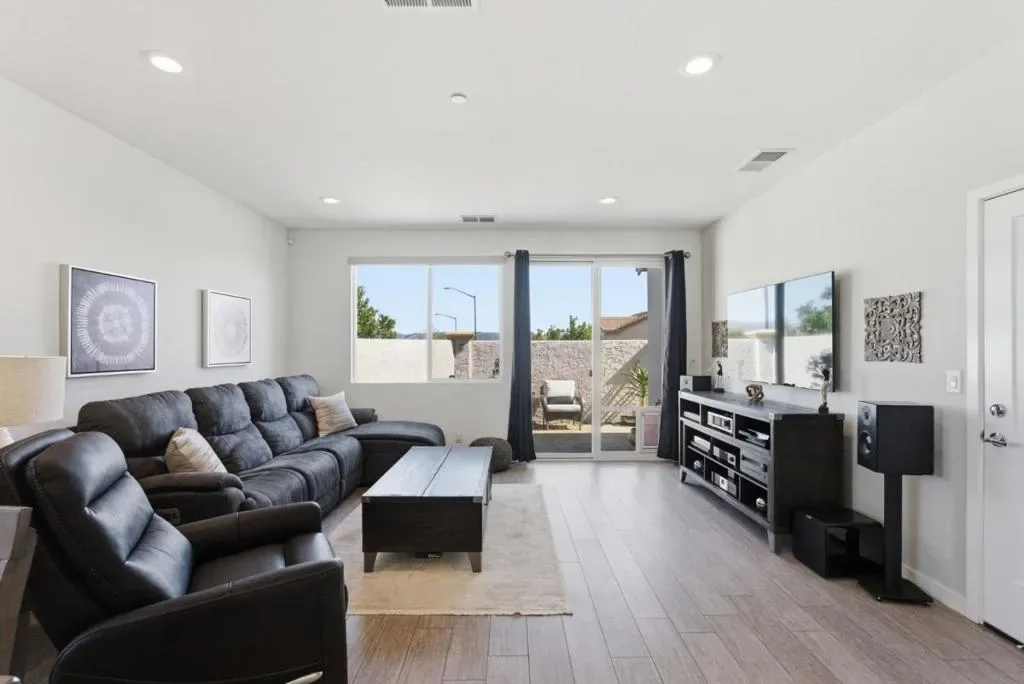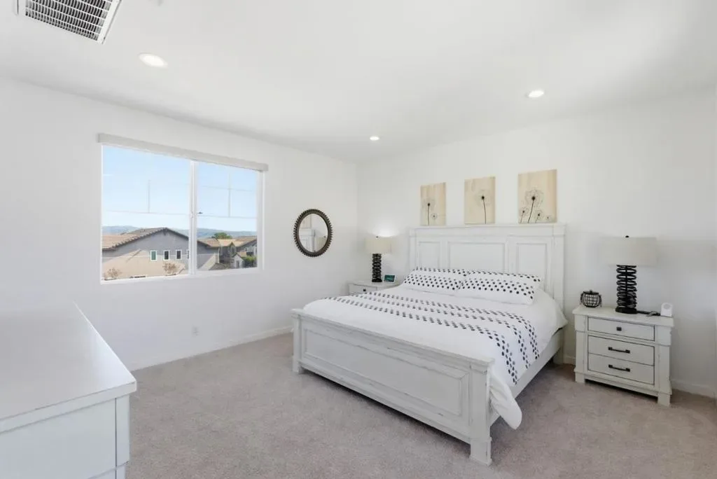 Welcome to 1325 Hernandez Way, a beautifully upgraded end-unit single family home on the coveted West side of Gilroy. Built in 2020, this home is only 6 years old and has been immaculately maintained. Positioned on a premium lot with only one neighbor, it provides privacy and offers an open, light-filled layout with dual pane windows and high ceilings. The kitchen features granite countertops, reverse osmosis, and opens to the dining area and living room. A bedroom and full bathroom on the ground floor provide flexibility for guests or multi-generational living. Upstairs, the primary suite offers a walk-in closet, en suite bathroom, and peaceful views. Modern amenities and energy efficient upgrades include solar panels, dual-zone heat and A/C, a WiFi-enabled tankless water heater, owned whole-house water purification system with sediment filter and softener, and integrated smart home features like wireless garage door opener, WiFi sprinklers, thermostats, smart lighting and video doorbell. Very low utility costs! Those looking for simplicity will appreciate the low-maintenance yard with professionally installed pavers. Exterior painted in 2025. EV-ready and equipped with Ring security, this move-in ready home blends comfort, convenience, and modern upgrades in a private setting.