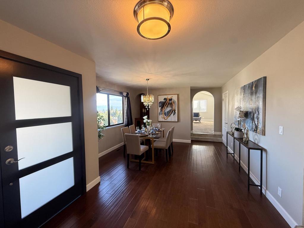 Welcome to this charming 3-bedroom, 2-bathroom home nestled in the desirable city of Gilroy. Spanning a generous 2,226 square feet, on a hill side with a view of the east hills, this residence features a well-appointed kitchen complete with granite countertops, a gas cooktop, oven, dishwasher, garbage disposal, and even a warming drawer perfect for any culinary enthusiast. The formal dining room, separate family room and game room provide ample space for entertaining. Recent remodeled bathrooms give a fresh appeal. The home boasts amenities such as vaulted and high ceilings with skylights, enhancing the sense of space and light throughout. Flooring is a blend of engineered wood, laminate, tile, and vinyl/linoleum, adding both durability and style. Cozy up by the fireplace on cooler evenings or enjoy the convenience of inside laundry facilities. Located within the Gilroy Unified School District, this property is set on a spacious 13,800 square foot lot, offering plenty of outdoor potential. Additional features include central air conditioning and heating, as well as a 2-car garage. Attached to the garage is a guest suite with a separate entry that can be used for passive income.