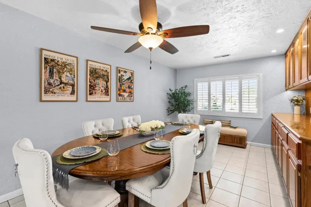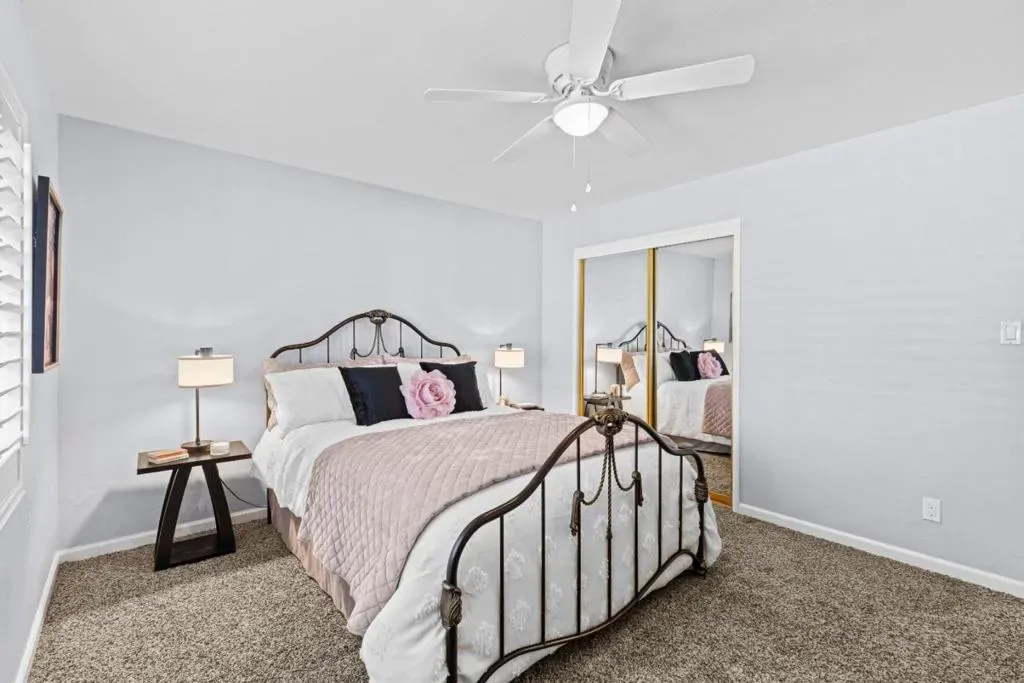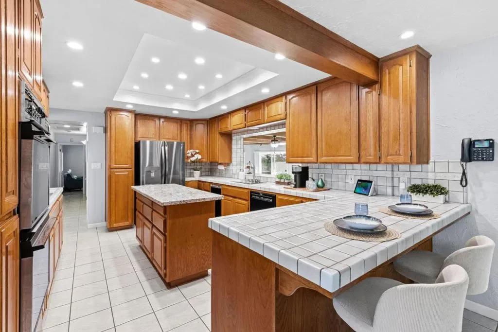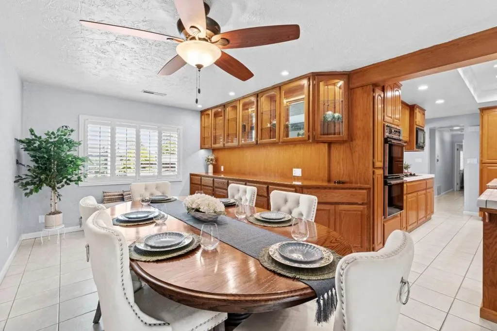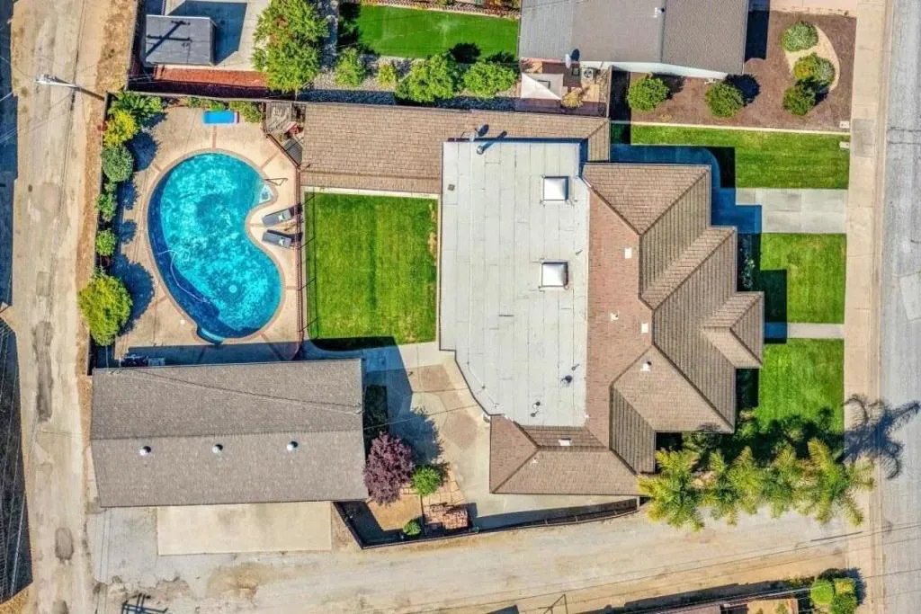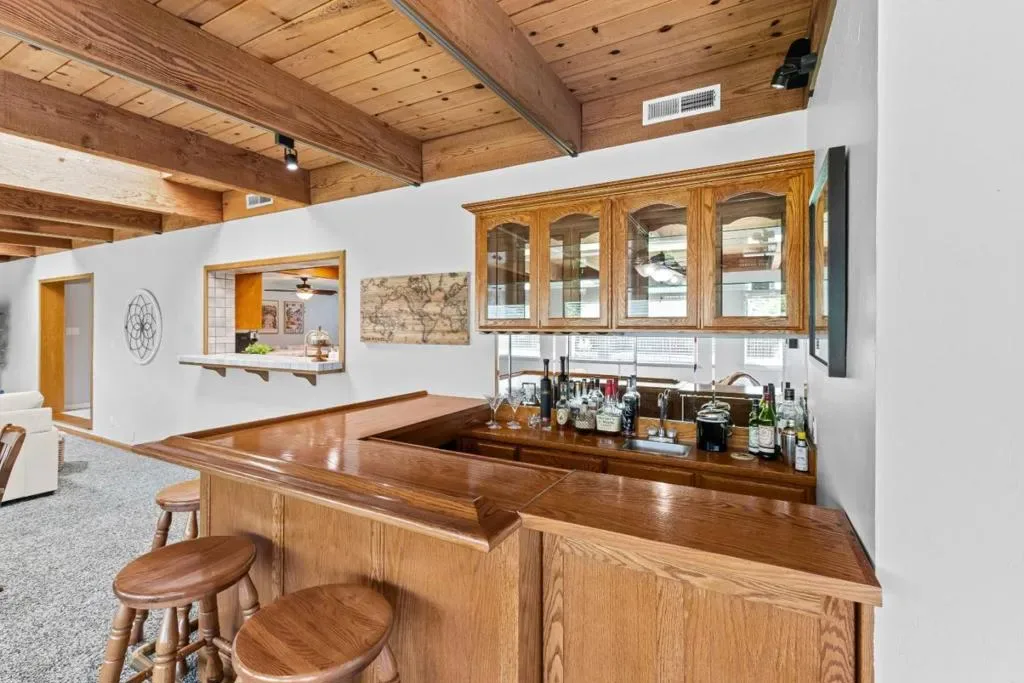 This spacious single level 3-bedroom, 3-bath home offers 2,458 sq ft of comfortable living space. Kitchen features tile countertops, large center island, builtin double electric ovens, JennAir cook top w/ grill, microwave, dishwasher, garbage disposal, trash compactor. Ideal kit for meal preparation and entertaining. Pass thru open to great rm from kit plus a breakfast bar Flooring throughout the home includes hardwood, tile, carpet, and vinyl/linoleum. Huge great room w/vaulted ceiling is equipped with a gas-burning freestanding stove, 2 skylites, builtin wet bar equipped with ice maker & bar fridge. This room is large enough to be divided to create even more usable space! Separate formal dining room offers full wall builtin buffet w/ upper glass door cabinets to show off the pretties! Detached three-car garage is perfect for ADU conversion w/ private alley access-you’ll never know their is someone living there & still have a garage! Heated gunite pool offers ample sunning areas around the pool plus safety fencing for piece of mind! Property offers the ultimate sun exposure.! Cabana offers shade, room for relaxing, entertaining and outdoor dining! Indoor laundry rm, central a/c, whole house fan plus ceiling fans. Formal living front of house-ideal for Holiday tree display!