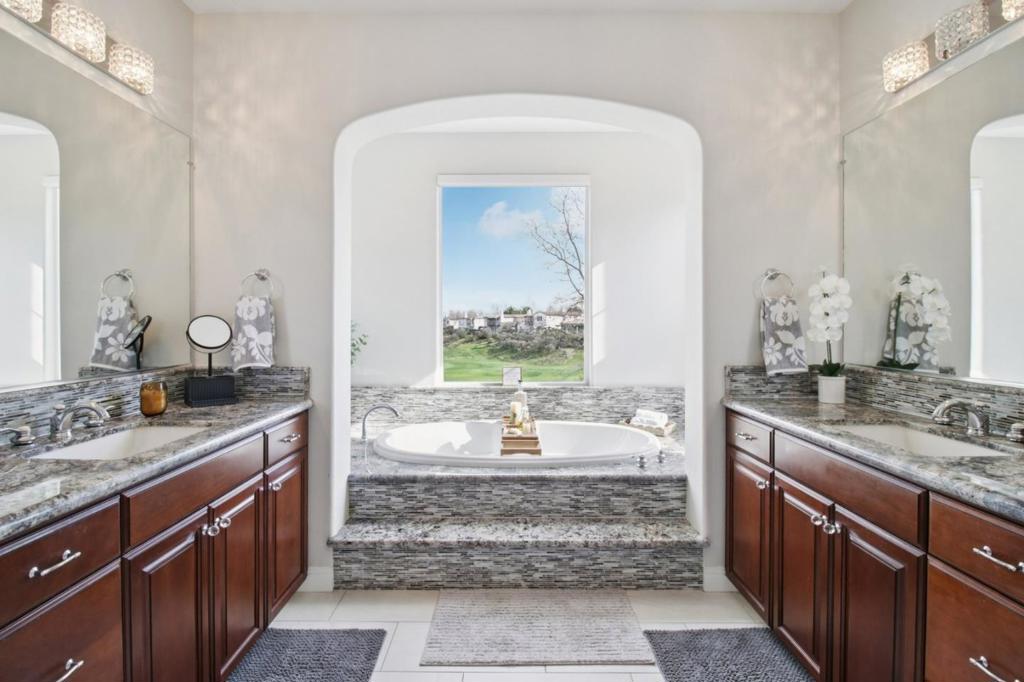 Stunning, immaculate, and move-in ready! Welcome to 7670 Mackenzie Way, an exquisitely updated Eagle Ridge home that truly checks all the boxes. Recently refreshed with new flooring, new custom interior paint, and a beautifully remodeled kitchen, this home blends modern style with classic comfort. The chefs kitchen shines with matte quartz countertops, Bosch stainless steel appliances, and beautifully refinished cabinetry, perfect for cooking, hosting, and everyday living. The main floor includes a full bedroom and bathroom, ideal for guests, extended family, or a private home office. Upstairs, discover three additional bedrooms, a spacious loft, and a luxurious primary suite. Relax in the spa-inspired bathroom and unwind in the soaking tub while taking in breathtaking golf course and hillside views. Step outside and enjoy an entertainers dream backyard featuring an outdoor kitchen and panoramic views of the golf course, an ideal setting for gatherings, dining, or quiet evenings under the stars. Located just moments from the Eagle Ridge Recreation Center with access to a pool, tennis courts, and basketball courts, this home offers an unbeatable blend of luxury, comfort, and community amenities. A truly exceptional home, you will love calling it your own.