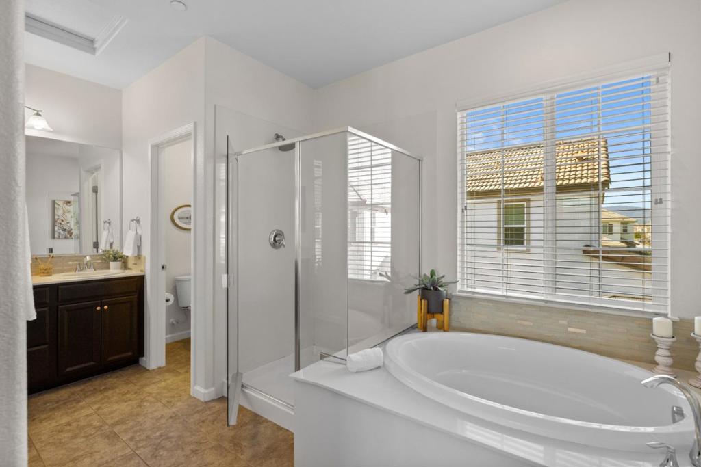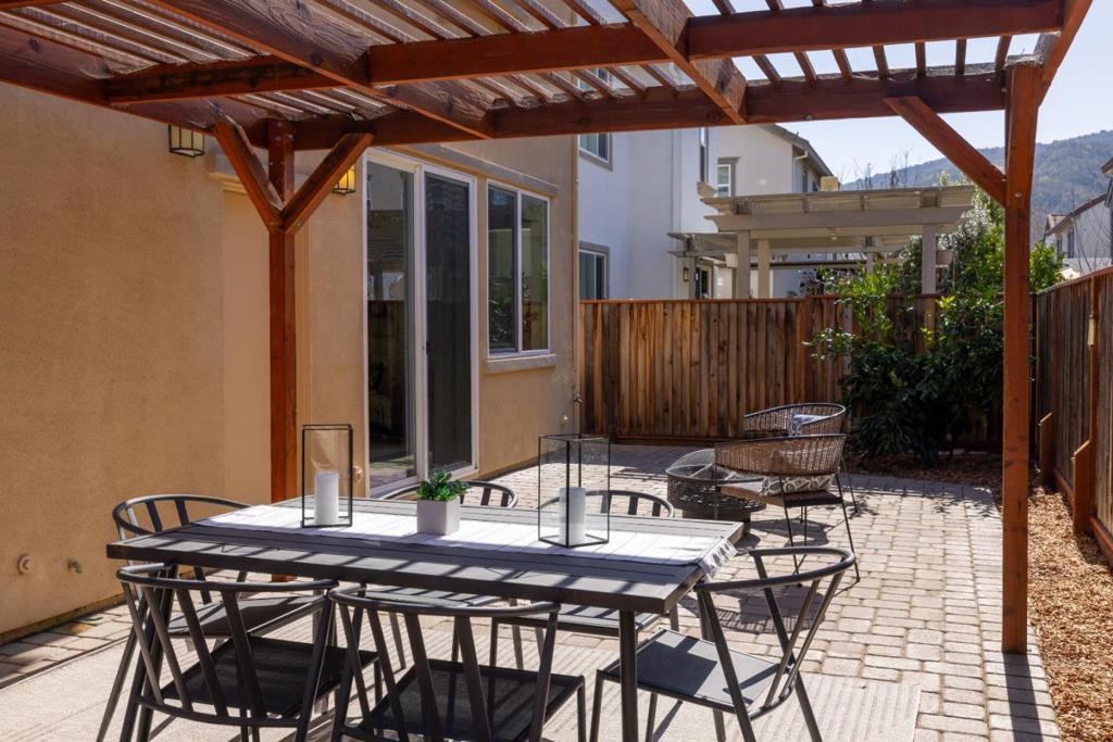 Minutes from Gilroy’s best parks and golf courses, the gated community of Heartland is well positioned to offer you the relaxed, connected lifestyle you crave in the “Garlic Capital of the World.” A long driveway promises ample parking for you and your guests in front of this attractive residence with a subtle Tuscan flair. Stone-accented beams frame a covered entryway. Pass through to an open concept kitchen and living room where light pours in through windows on all sides, illuminating a warm neutral color palette. Slip into a chair at the breakfast bar, warming your hands around a steaming hot cup of espresso that sits waiting for you on a glossy granite countertop. Everything, from the dark cabinetry to the mosaic tile backsplash, communicates contemporary sophistication, warmth, and chic, like that stylish bistro you know that always plays smooth jazz at brunch. Glass doors connect these rooms with a low-maintenance outdoor space, where you can gather with friends around a fire pit or enjoy candlelit dinners beneath a wood pergola. Find three expansive bedrooms on the second level, along with a lofted bonus space that would make an ideal office, study, or media hub. Meritage Homes built this property in 2015, and today it’s yours to love.