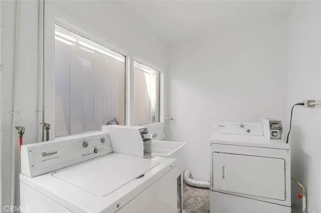 The property is part of a clean, well-maintained community with attractive landscaping, green grass, and lush plants that create a welcoming and peaceful environment. Residents also enjoy the convenience of on-site community laundry facilities with washer and dryer.