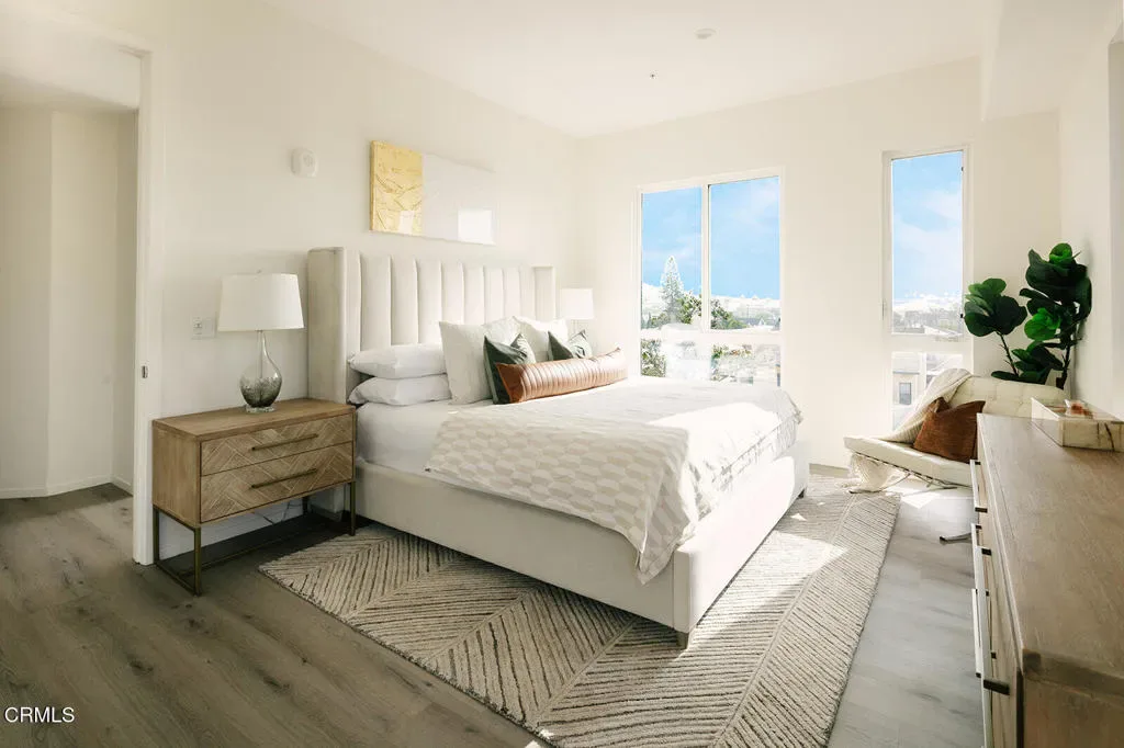 3th floor bright & spacious condominium home in the vibrant downtown Glendale directly across the street from the iconic Americana at Brand. Suite #302 is one of the featured condominium homes in the phase One Release of the Verdara subdivision, originally built in 2017. Verdara, a collection of luxury boutique residences inspired by the European lifestyle, spanning street to street, this five-story condominium community offers an array of 1-, 2-, 3-, and 4-bedroom floorplans. A stylish Parisian-inspired lobby welcomes you with classic marble floors, timeless wainscoting, and a prestigious front desk, setting the tone for refined city living. Verdara features 50 thoughtfully curated residences, each designed with modern open-plan layouts, 11 penthouses with soaring ceilings, oversized windows, and an abundance of natural light. Residence 302 features 2 bedrooms, 2 bathrooms, open floorplan, balcony, overlooking Elk Avenue with views to Downtown LA. Select first-floor homes include private patios with convenient access to the lobby, fitness center, and resident lounge, while private balconies extend living spaces into the energy of the city beyond Verdara’s tranquil grounds. Residents enjoy exceptional amenities, including the exclusive indoor/outdoor Resident’s Lounge, surrounded by lush greenery and complete with a full kitchen, long bar, and modern fireplace ideal for entertaining or relaxing evenings. The private fitness center is fully equipped for both cardio and strength training. Additional conveniences include gated subterranean parking with ample guest spaces, a secure package room, and front desk. Perfectly situated in one of Southern California’s most vibrant destinations, Verdara provides immediate access to premier shopping, dining, and culture, with effortless connectivity to the I-5, the 134, Downtown LA, and the best of LA. Additional floorplans available starting price ranges $655,000 to $2,055,000.00. Suite #302 has inside the unit laundry, walk in closet, open living room and dining room, 2 car garage. Seller Financing is currently available to qualified buyers.
