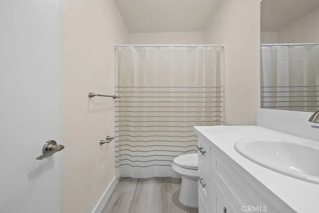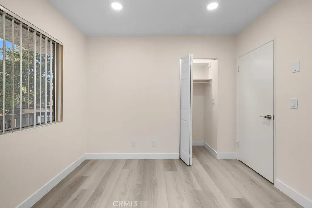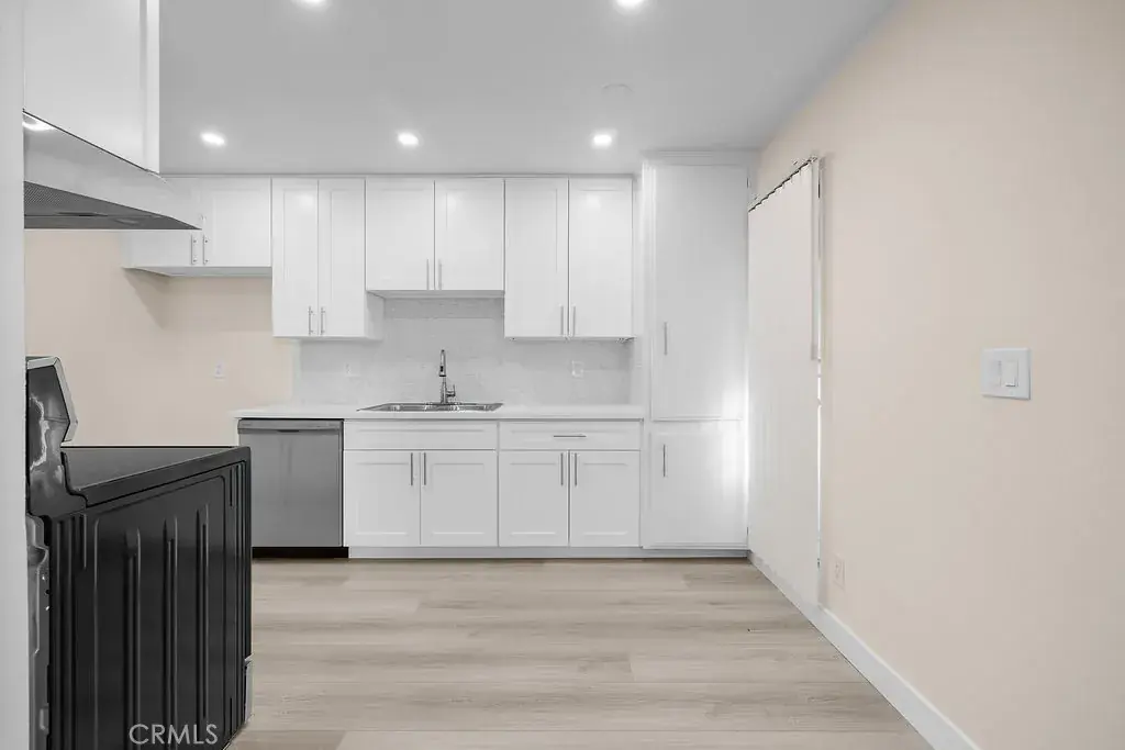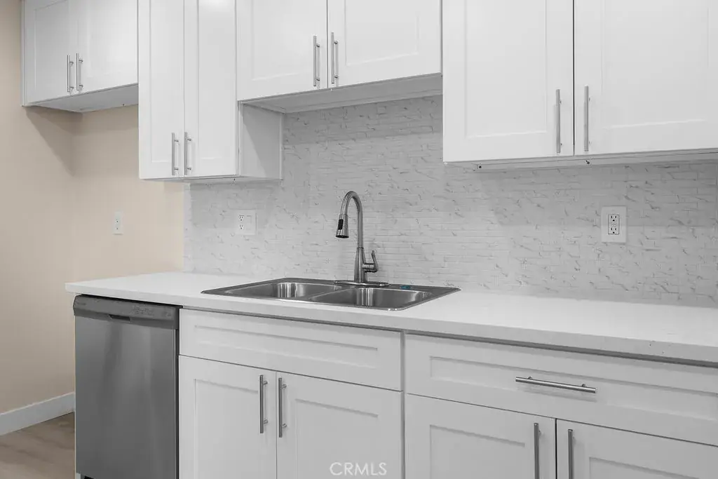 Updated end-unit 2 bedroom, 2 bathroom condo offering a spacious open floor plan with laminate flooring throughout and recessed lighting. The kitchen features white cabinets, quartz countertops, stainless steel appliances, and a stylish backsplash. Both bathrooms have been tastefully remodeled, and the unit is bright and airy with plenty of natural light. Located in a quiet building with great schools nearby, this unit is conveniently located near the entrance for easy access. Enjoy a large private balcony, perfect for relaxing or entertaining. Close to major freeways, shopping, dining, and entertainment.
