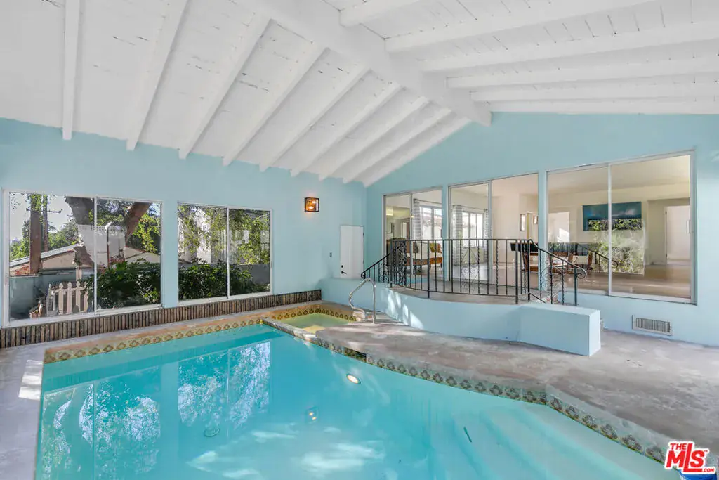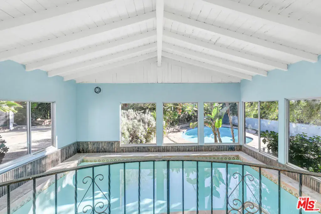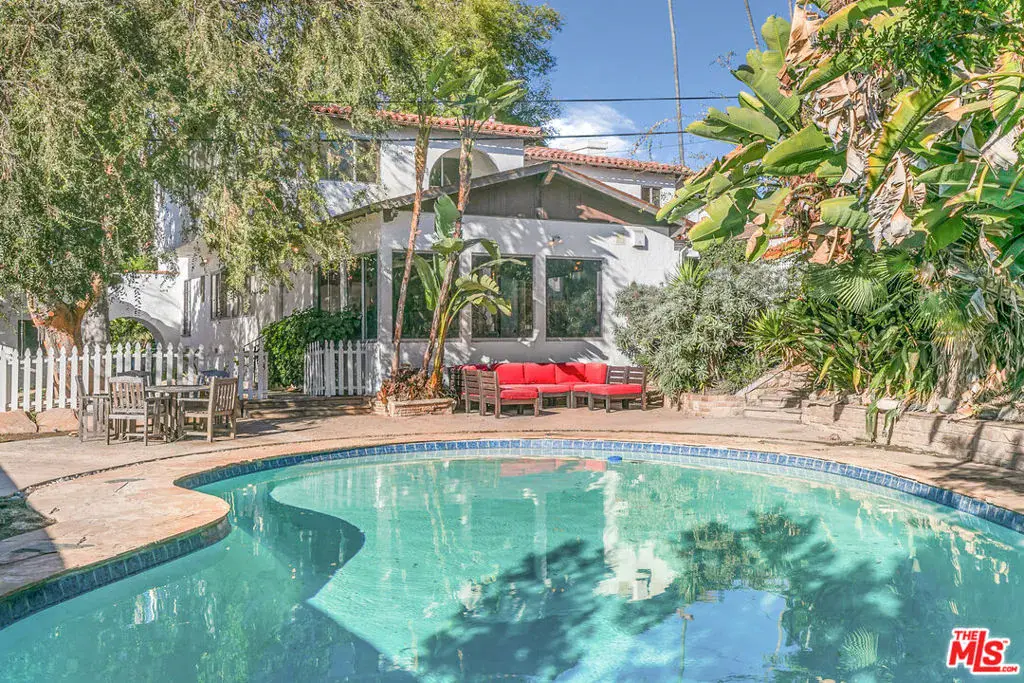 Perched high in the Glendale Hills, this 1934 Spanish-style treasure offers 4,705 sq ft of timeless charm on a sprawling 14,400 sq ft lot. The home features a grand living room with soaring ceilings, arched windows, and a stately fireplace. The whimsical kitchen boasts cobalt blue cabinetry, vintage details, and a sunny breakfast nook. The backyard is an entertainer’s paradise with a sparkling outdoor pool, lush greenery, built-in grill, pizza oven, and a mature avocado tree. Inside, enjoy the luxury of an indoor pool and hot tub for year-round indulgence. The upstairs primary suite includes a private living room and balcony with serene views. A recreation room with pool table, detached studio, two-car garage, and driveway parking complete this unique hillside retreat. Memories are waiting to be made at 1530 Valley View.