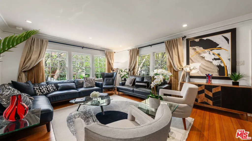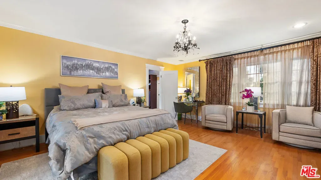 Welcome to this charming cottage-style home in the heart of Glendale Woodlands Area spanning over 4,000 square feet, this residence offers a traditional layout with 4 bedrooms and 3.5 bathrooms. Elegant crown moldings, a cozy fireplace, and seamless flow into the family room highlight the home’s inviting character. The formal dining room, anchored by a statement chandelier, connects to a chef’s kitchen equipped with ample storage, granite countertops, a Sub-Zero refrigerator, and a WOLF range. For more casual gatherings, the entertainment room opens through French doors to a lush backyard retreat. The spacious primary suite features its own set of French doors leading outside, a generous walk-in closet, and a spa-like bathroom. Three additional bedrooms and two bathrooms complete the home’s interior. Step outside to a resort-style backyard, where a sprawling patio, flat grassy area, sparkling pool, and relaxing jacuzzi create the perfect oasis for entertaining and unwinding.