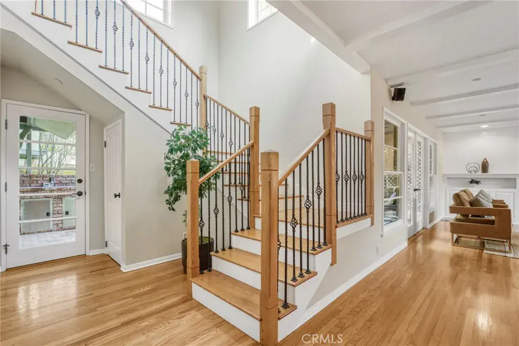 Designed for entertaining and relaxation, the backyard offers a soothing fountain, garden, citrus trees, and two distinct patio areas. One patio is conveniently located just outside the living room and includes a built-in BBQ, while the second patio sits directly outside the primary bedroom, providing a private outdoor retreat. A basement provides flexible space ideal for a music room or tween lounge. Additional features include a 2-car attached garage and a rare street-to-street lot that enhances accessibility and potential.