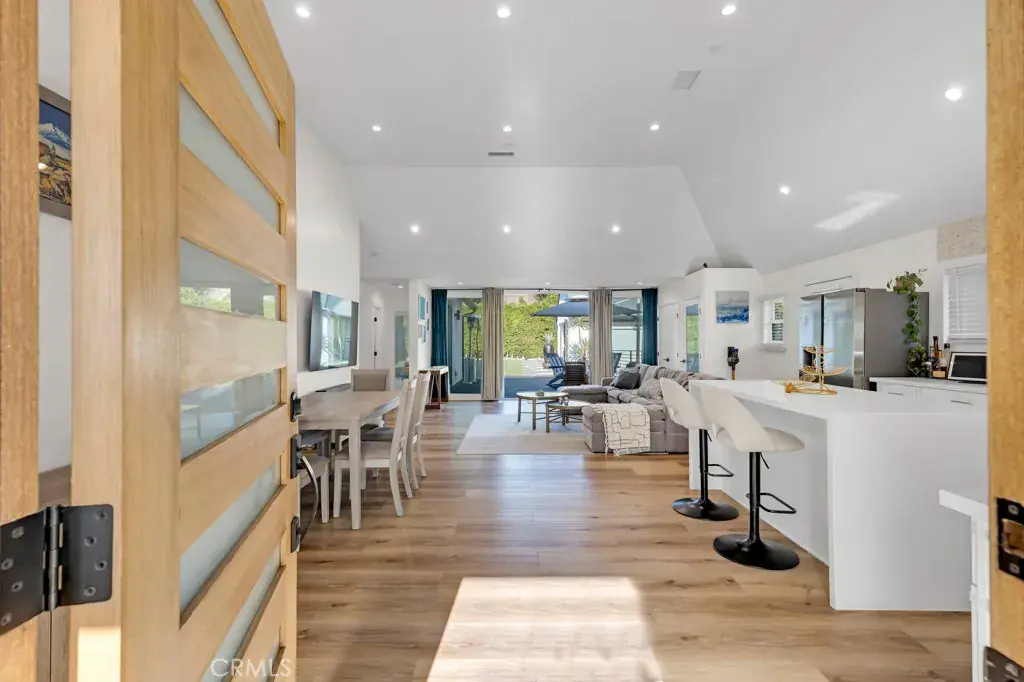 Step inside to discover a bright, open floor plan with high ceilings, newer flooring, and a seamless flow between the kitchen, dining, and the living area. The huge designer kitchen features stainless steel appliances, a beautiful backsplash and modern finishes. The spacious living room area has plenty of outdoor light coming in from the huge glass doors and a view of the gorgeous deck. The master bedroom has custom sliding doors that step to the private, luscious green backyard. The custom deck is perfect for indoor-outdoor entertaining.