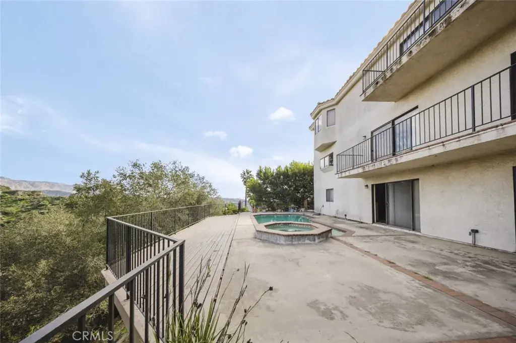 Resort-style outdoor amenities include a pool and spa surrounded by mature landscaping and scenic hillside backdrops. Additional features include an attached 3-car garage and ample driveway parking.