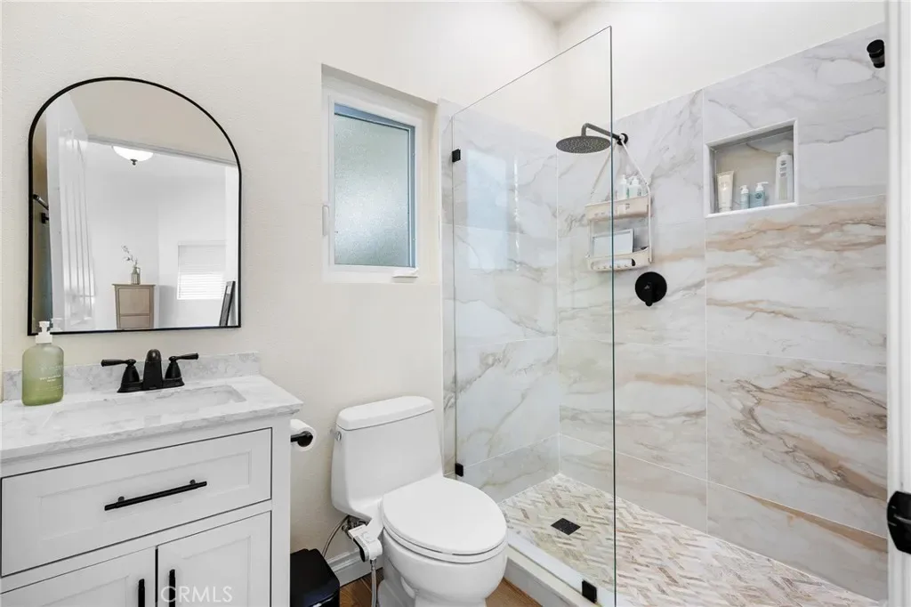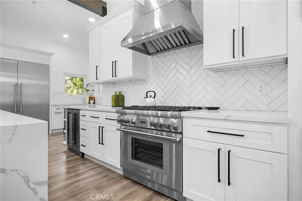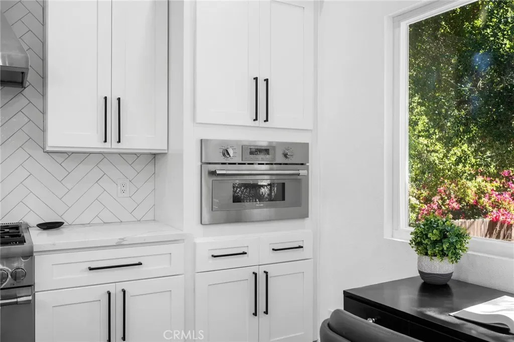 Thoughtfully redesigned throughout, the home showcases a stunning brand-new kitchen appointed with sleek quartz countertops and a full suite of premium Thermador appliances, including a built-in microwave/air fryer, wine refrigerator, and beverage refrigerator. Beautifully renovated bathrooms, soaring ceilings, and expansive windows fill the home with natural light, creating an open and airy layout ideal for both everyday living and entertaining.