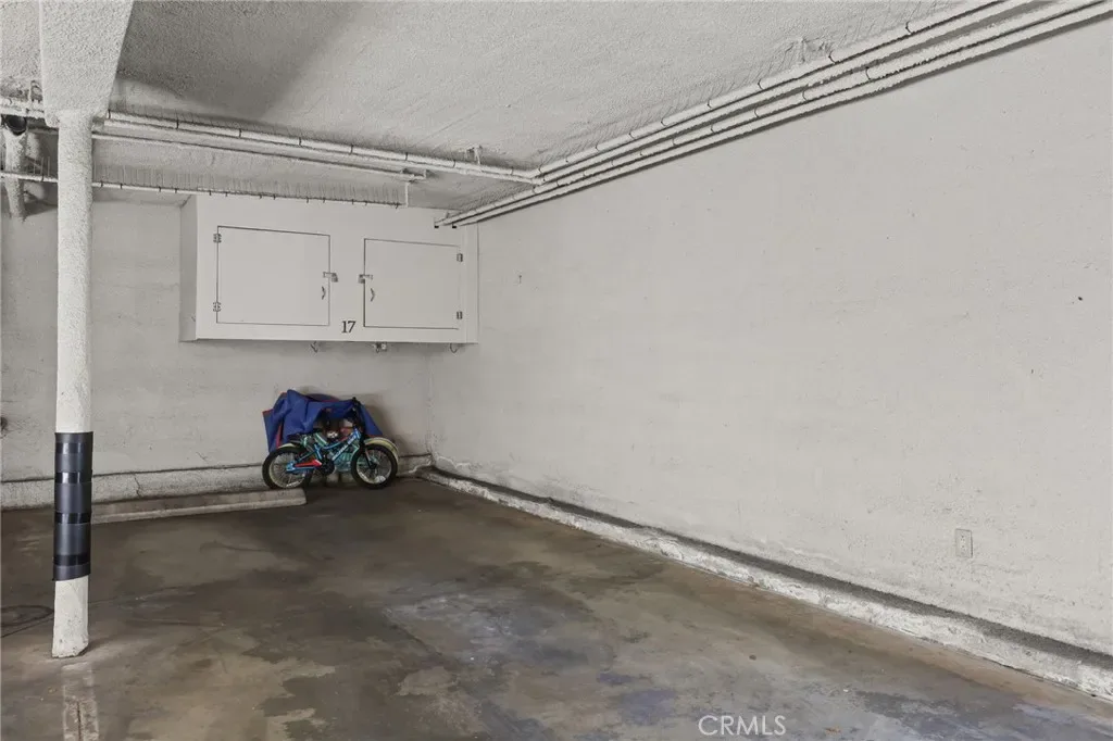 The unit includes two covered parking spaces with extra storage.