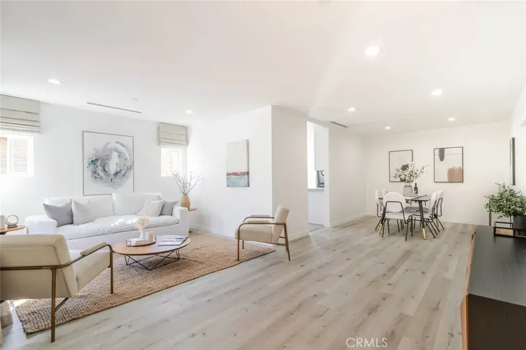 All units are fully equipped with stainless steel appliances, including refrigerator, oven, microwave, washer, and dryer, along with dedicated laundry spaces for each home. Interior finishes include recessed lighting, light wood-tone flooring, fresh white paint, and ample cabinet space, creating bright, contemporary living environments throughout.