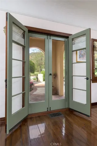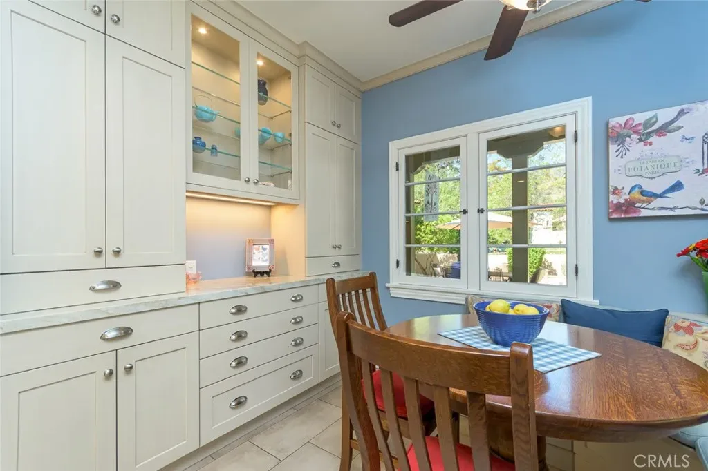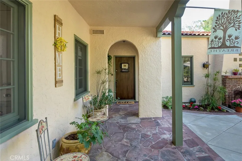 Spanish Revival Architecture is having a major moment and this home showcases all of the signature design elements that make this style so popular, features like arched doorways and a large picture window, dark wood ceiling beams, wood-framed French windows, wrought-iron railings and fixtures, a handsome fireplace and hearth trimmed in Spanish tiles, intricate carved wood detailing at the mantle and decorative lintels, and a delightful little niche in the hallway. From the moment you enter through the wrought iron gate, you’re welcomed by a large, vibrant courtyard designed for entertaining or relaxing beside the peaceful fountain and outdoor fireplace. This blend of classic architecture from the 1920s has all of today’s modern conveniences and luxury as well. The well-designed kitchen is outfitted with top-tier Wolf appliances, a Shaws handcrafted sink and custom Wood Mode easy-clean cabinets. (You’ll have to look closely to find the seamlessly integrated refrigerator and dishwasher.) The charming breakfast nook with its built-in seating is perfect for morning coffee or a cozy casual dining area. This nook also offers a wall of cabinets and a lighted, glass display case. The adjacent laundry room provides additional cabinet space. One thing is for sure: you won’t lack for cabinet space here! Polished peg and groove wood floors in the living room and formal dining room add to the richness and beauty of this home. Climb the wood staircase with its wrought-iron railing and experience the beauty of the large stained glass window above the landing. Upstairs, the spacious primary bedroom offers French doors to a private balcony overlooking the courtyard with pleasant views of the Verdugo Mountains. The adjacent retreat is ideal for a home office or a quiet space for reading. The primary bath has tile floors and wainscoting, a pedestal sink, a separate tub and shower and a banco with flanking cabinets. Three of the four bedrooms are on the upper level and two of the bedrooms have vanities (one up and one down). Whether it’s in the expansive front courtyard or the more intimate back-yard patio with a waterfall spa and built-in BBQ, this home is designed for entertaining. Meticulously maintained, this is a golden opportunity to own a home that provides historic charm while delivering modern livability.