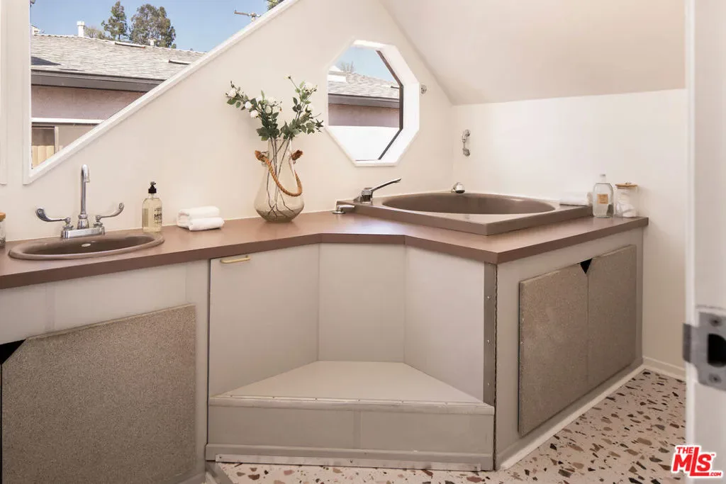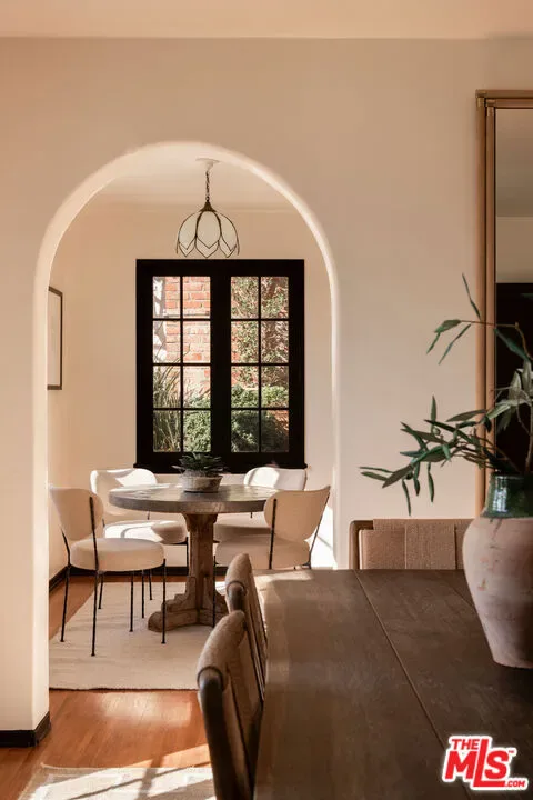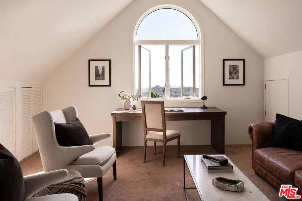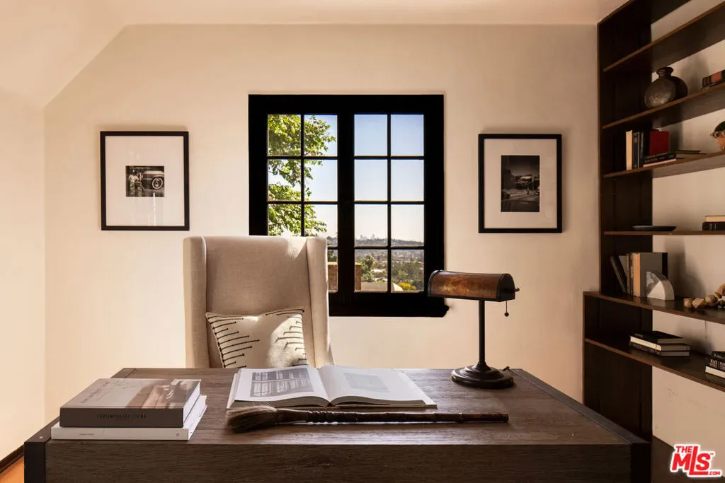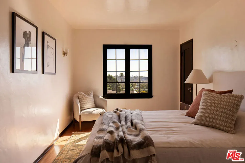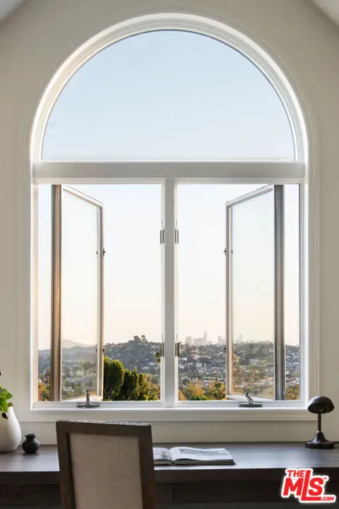 Perched on a private hillside in Glendale’s coveted Chevy Chase Canyon, this timeless Tudor Revival captures sweeping 270-degree views stretching from the canyon below to the Downtown Los Angeles skyline and all the way to the Pacific Ocean. The elevated setting offers exceptional privacy and a breathtaking panorama of rolling hills, sparkling city lights, and distant coastal horizons. Rich in architectural character and enduring craftsmanship, the residence offers four bedrooms and three bathrooms across a gracious floor plan defined by traditional Tudor details. Warm hardwood floors, arched passageways, and original detailing create an atmosphere of timeless elegance throughout. At the heart of the home, the living room is both dramatic and inviting, with exposed ceiling beams, a statement fireplace, and expansive picture windows framing the surrounding hills and Downtown LA skyline. Flooded with natural light by day and glowing with city lights at night, it provides a beautiful setting for both quiet evenings and entertaining. Through graceful arched openings, the formal dining room sits between the living room and kitchen, creating a natural flow for gatherings. The kitchen blends warmth and functionality with custom wood cabinetry, stone countertops, stainless steel appliances, and generous storage, while a sunlit breakfast area provides a welcoming spot for casual meals or morning coffee. The home’s bedrooms are thoughtfully arranged for comfort and privacy. The primary suite occupies the entire second floor, creating a true retreat with vaulted ceilings and a dramatic arched window framing DTLA skyline views. Generous in scale, the suite offers space for both sleeping and sitting areas, while the adjoining bath features a Japanese-style soaking tub, a brand-new walk-in shower, and distinctive geometric windows that bring in soft natural light. Additional bedrooms on the main level are well-proportioned and versatile, served by two bathrooms including a charming hallway bath with vibrant vintage turquoise tile and an additional en-suite bath. Outdoor spaces further enhance the home’s sense of retreat. At the front of the home, a flagstone patio offers a picturesque setting for al fresco dining beneath mature trees and cafe lights. Above the garage, a private terrace provides another inviting seating area and a perfect perch for canyon and city views. Behind the home, terraced hillside gardens unfold with winding paths and multiple seating areas overlooking the surrounding landscape. The property spans street-to-street, ensuring no neighbors directly behind and enhancing the sense of privacy. Set within one of Glendale’s most picturesque hillside neighborhoods, this exceptional property offers a rare combination of architectural character, breathtaking views, and tranquil outdoor living.